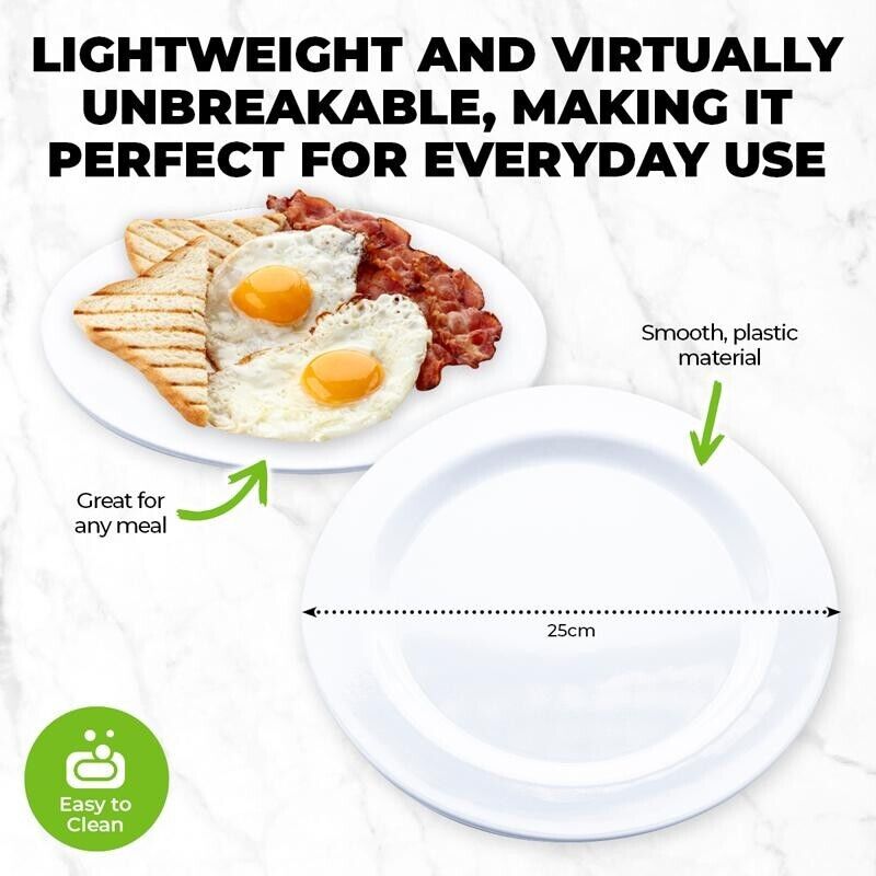 Package includes 6 x Round Melamine Plates - 25cm