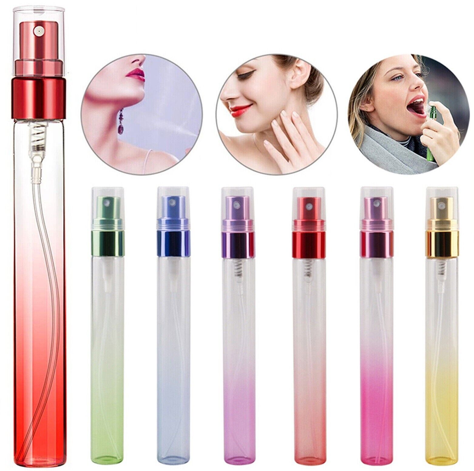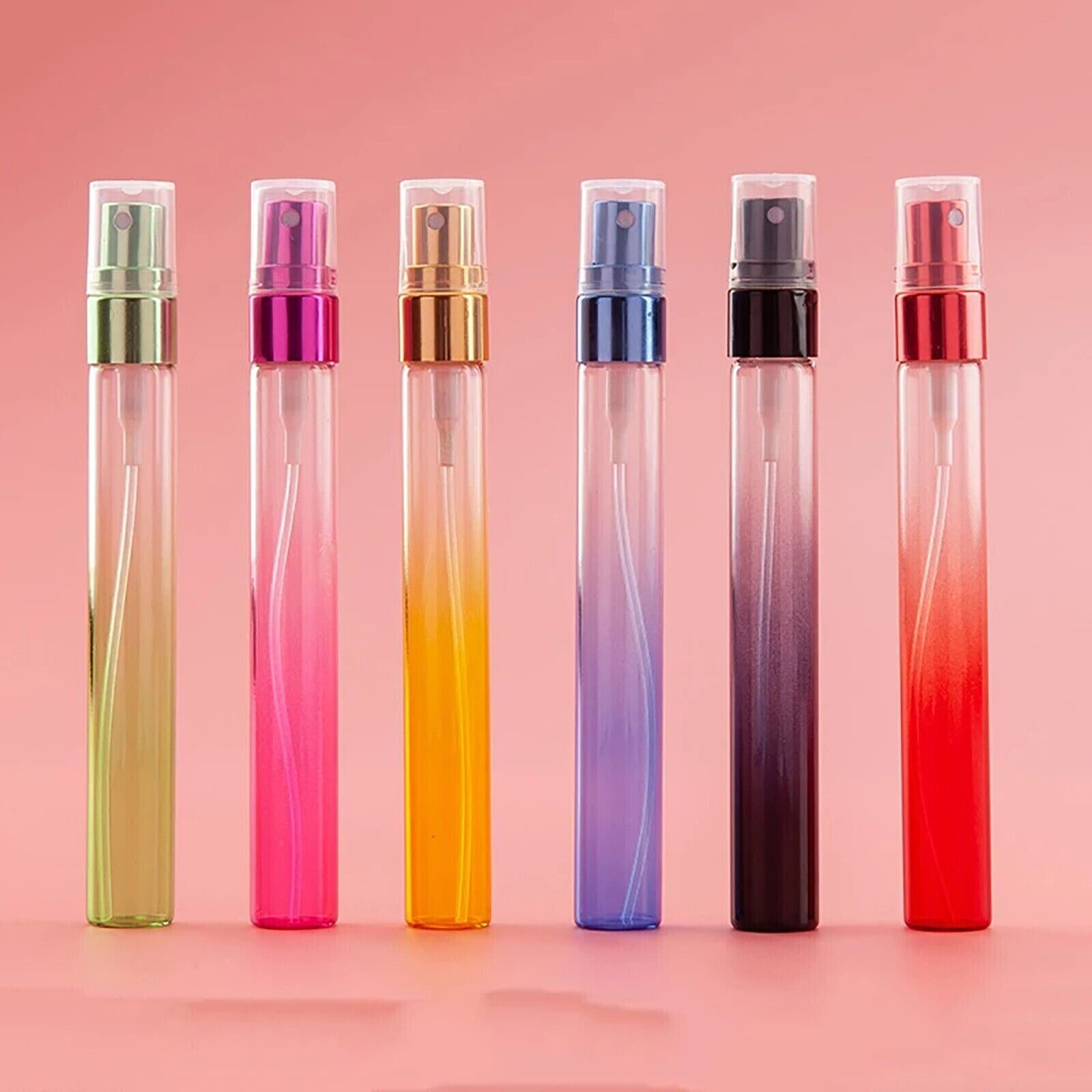 Gradient and eye-catching: these mini fine mist spray bottles are designed with gradient colors in 6 styles, like purple, green, red, blue, pink and gold, look charming and eye-catching, you can choose your desired colors according to your corresponding moods.