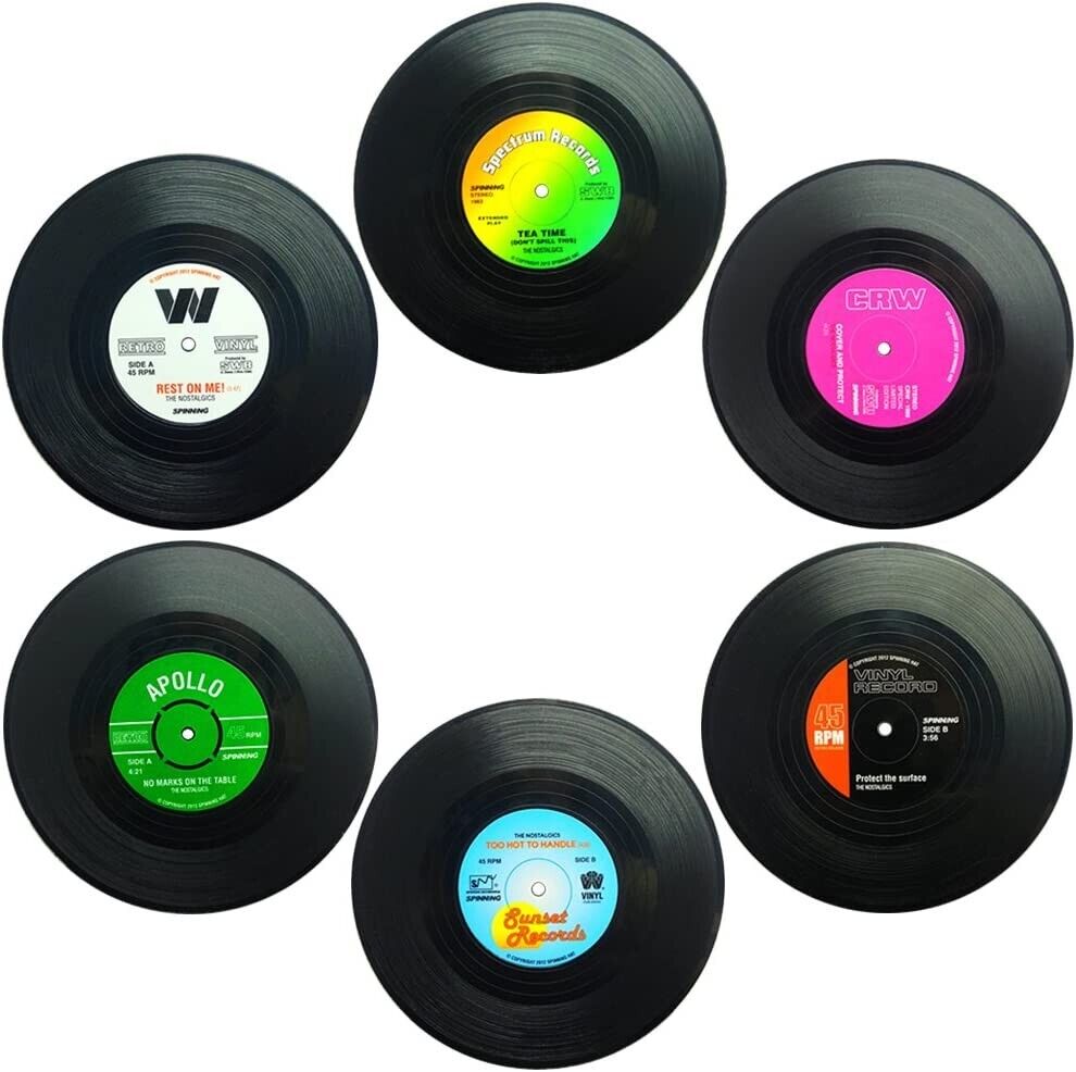 - A play on words for a record and a coaster. They all also have a small hole in the center just like a album,you can hang them up on the wall. On small nails so that you can take them off and use them as coasters and hang them up as wall decorations. Great gift for music lovers and perfect for parties.