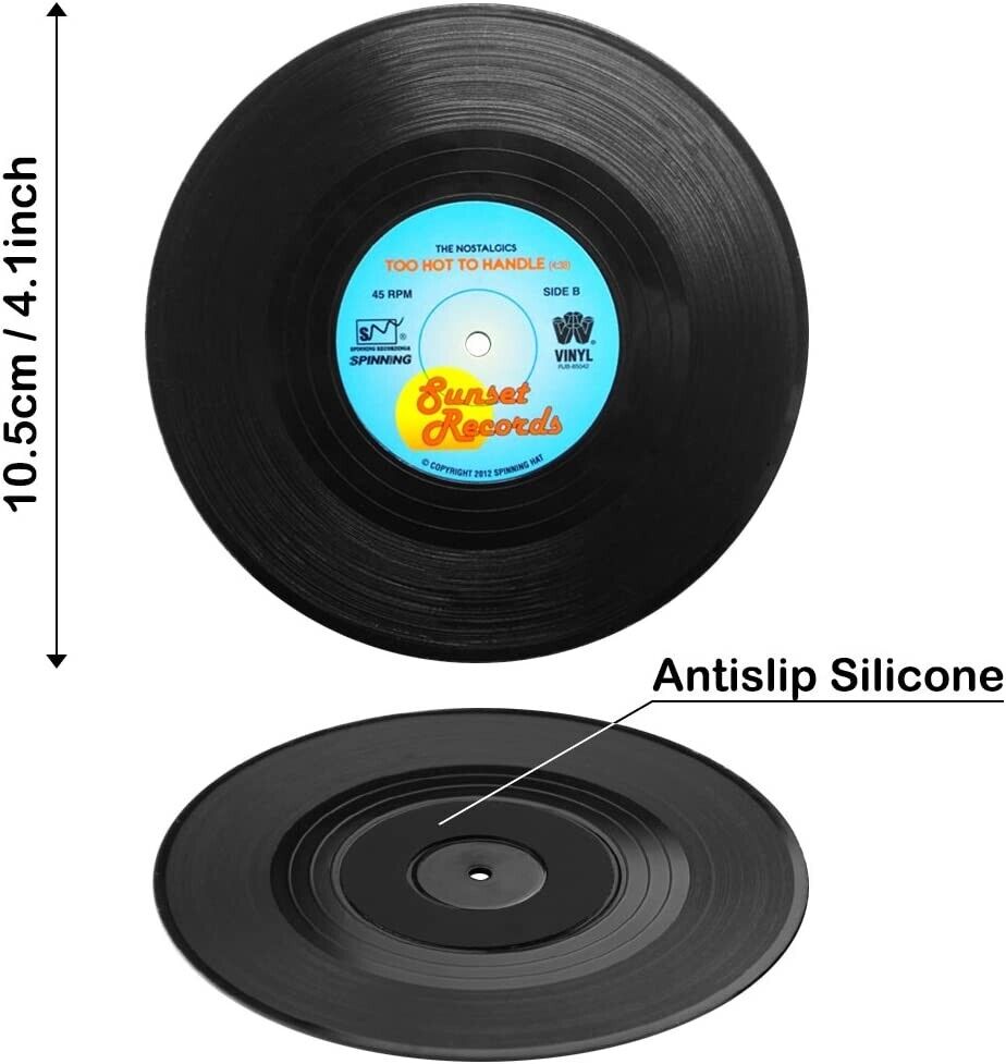 - A prefect size to fits any large small glassware, mug cup tea cup or bottle.Adorn your coffee table with these stylish retro vinyl record coasters,a excellent table bar tools and accessories.