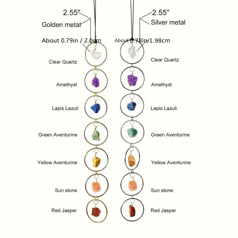 7 Chakra Crystal Hanging Ornament Natural Stone Wall Decor Home Silvery Metal