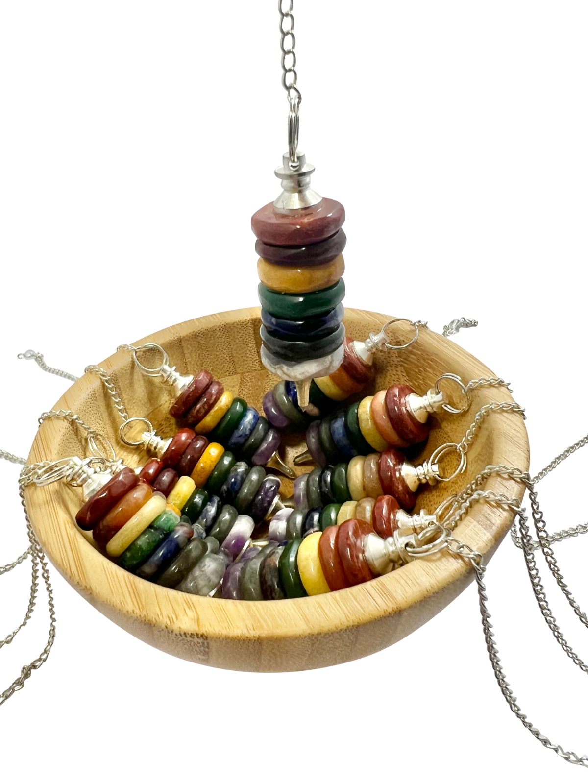 Pendulums are often used as tools for spiritual healing and inner growth. Defined as objects attached at the end of a string or metal chain, when suspended from a stationary position, a pendulum will swing back and forth or in a circular motion.
