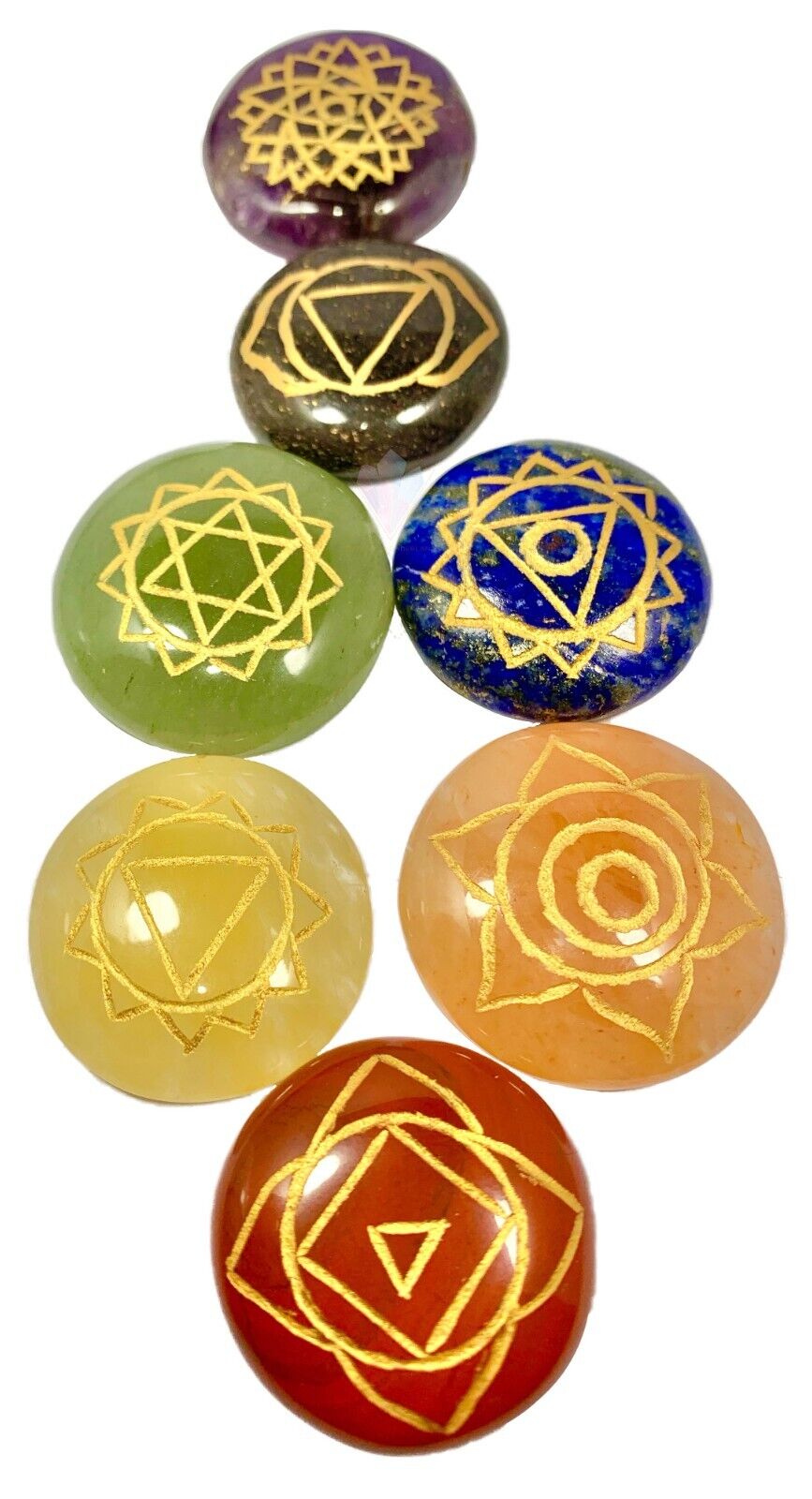 Quantity: 01 set (Amethyst, Blue Aventurine, Lapis Lazuli, Green Aventurine, Yellow Aventurine, Orange Aventurine, Red Jasper)