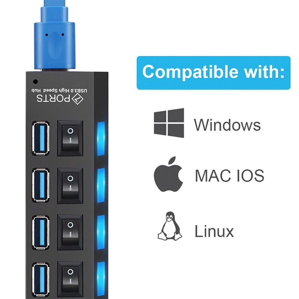 7 Port USB 3.0 High Speed Extension Hub Splitter Extender For PC Laptop MacBook