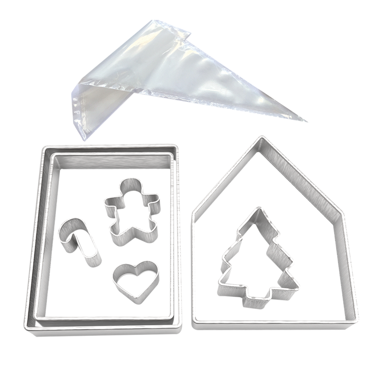 7pcs Gingerbread House Bake Set Steel Cookie Cutter Baking Set Piping Bags