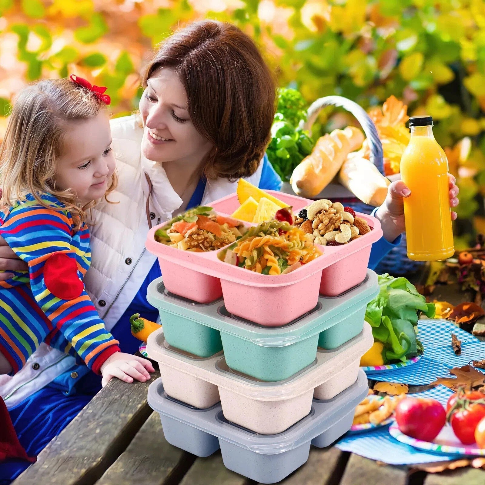 8 pcs Snack Containers Reusable Bento Box 4 Compartment Meal Prep Lunch
