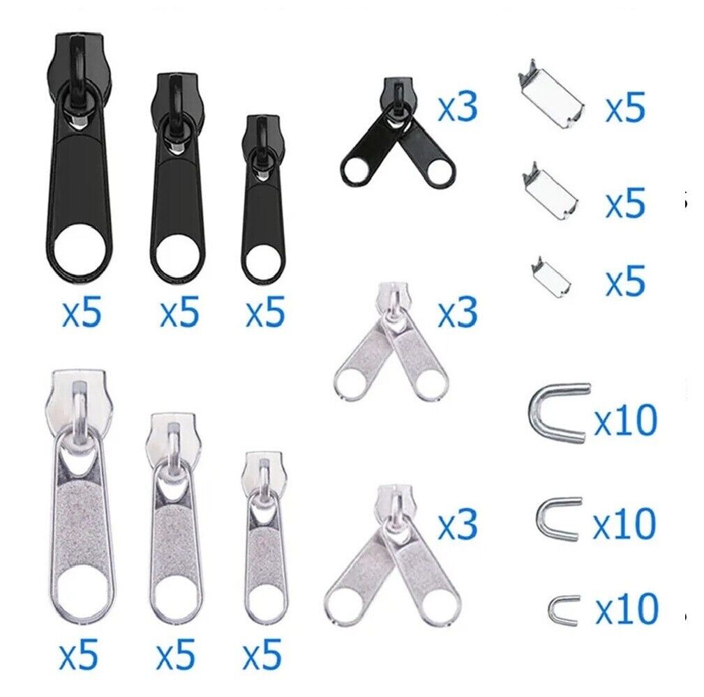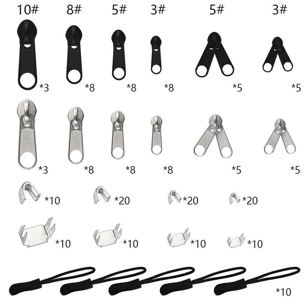 84PCS Zipper Replacement Head Zipper Repair Kit Fix Zip Slider Set Zipper