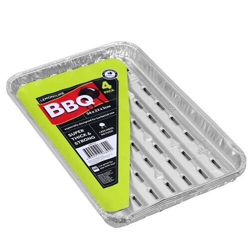 FOIL GRILL TRAY 4PK 34X22X3CM SHELF READY PDQ