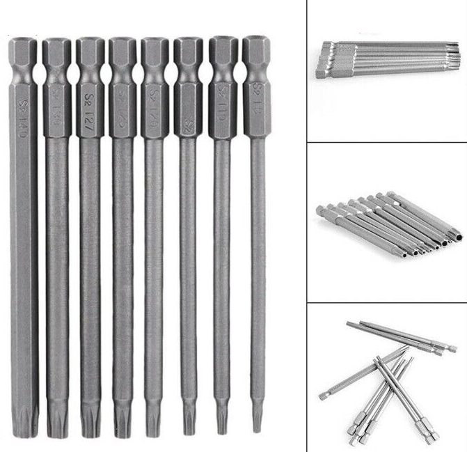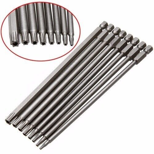 8x Torx Screwdriver Bit Set Hex Security Magnetic Head 100mm Long T8-T40