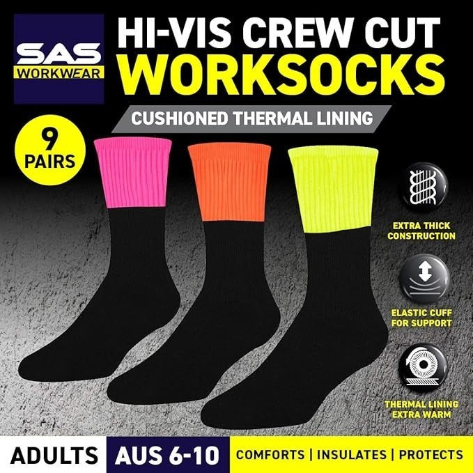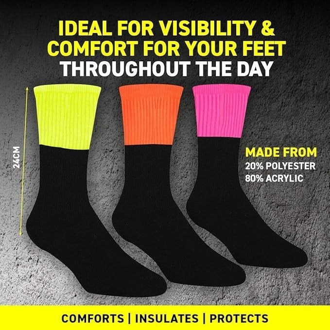 9pairs Socks Adults Workwear Thermal HighVisibility Cut Fluro Orange Yellow Pink