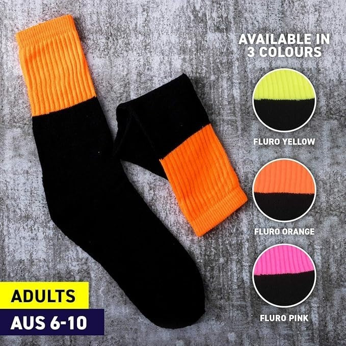 Package Includes: 9 Pairs Socks Adults Workwear Fluro - Yellow Pink & Orange