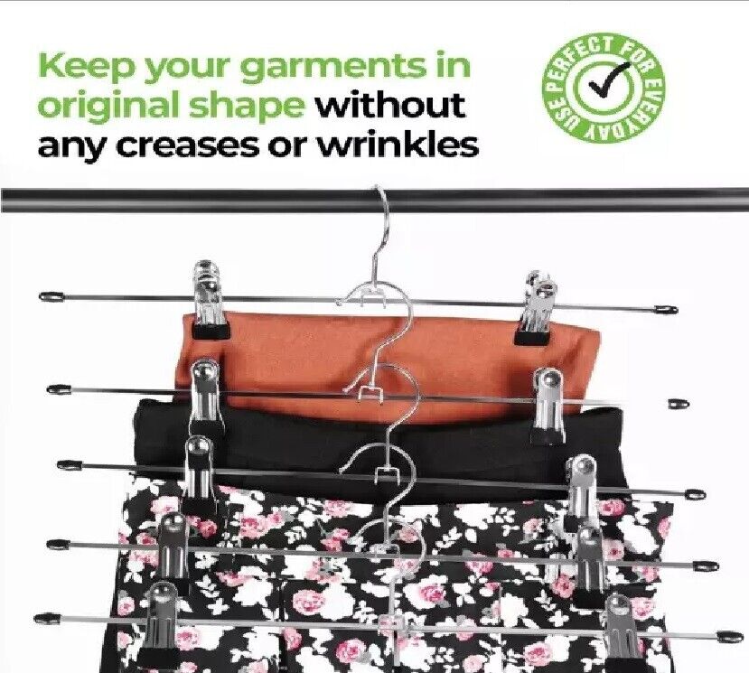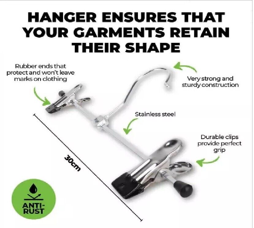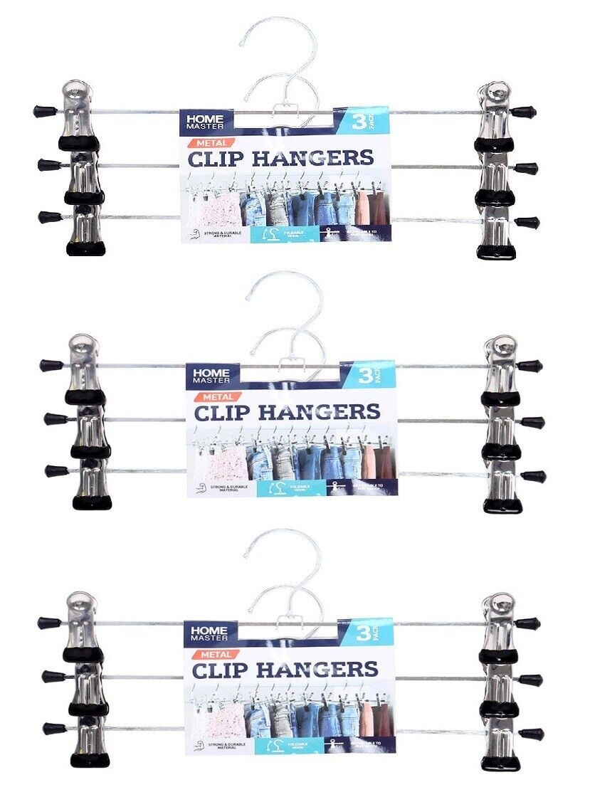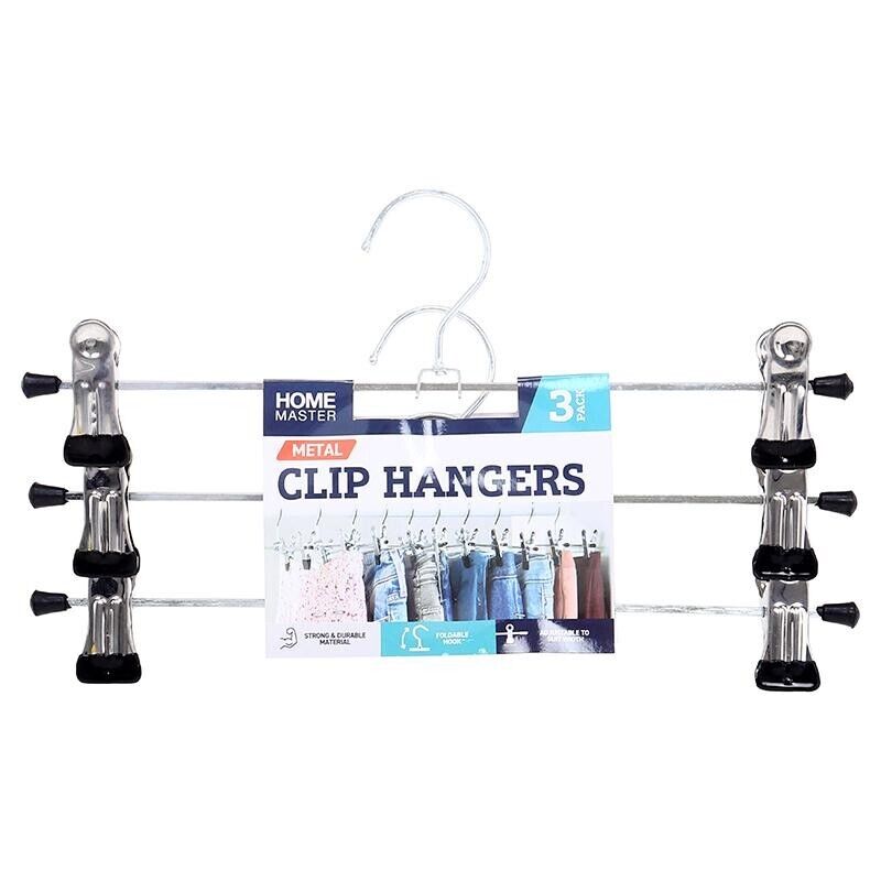 Home Master Perfect for hanging all your trousers, pants, skirts, or slacks are these Clip Hangers. Adjustable to suit the garment's width, these clips have durable rubber ends to protect your clothes from marks. A handy addition to your wardrobe.