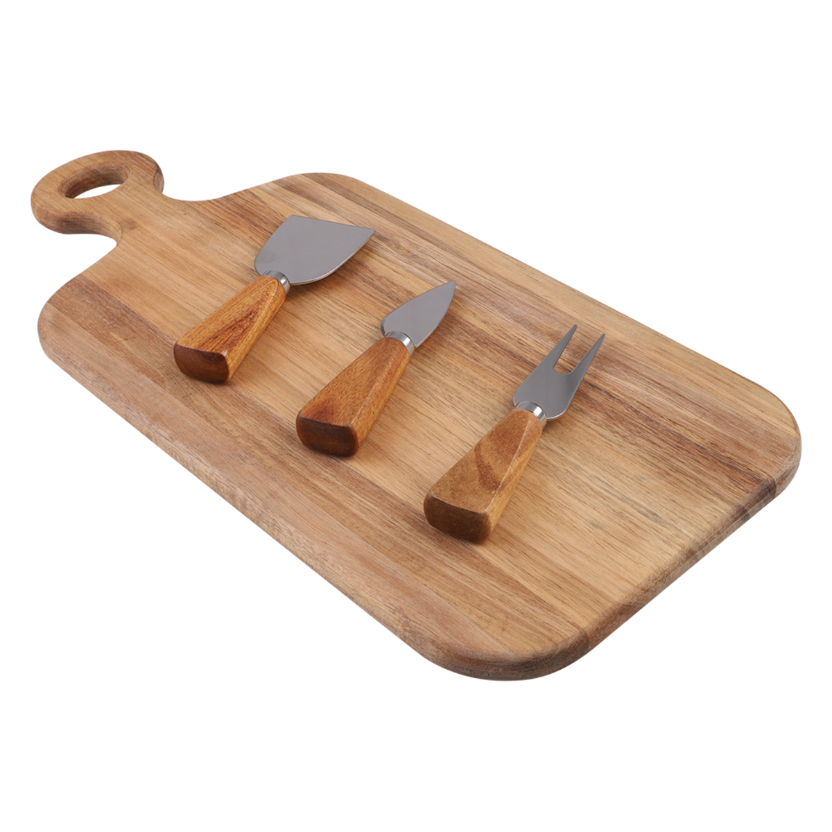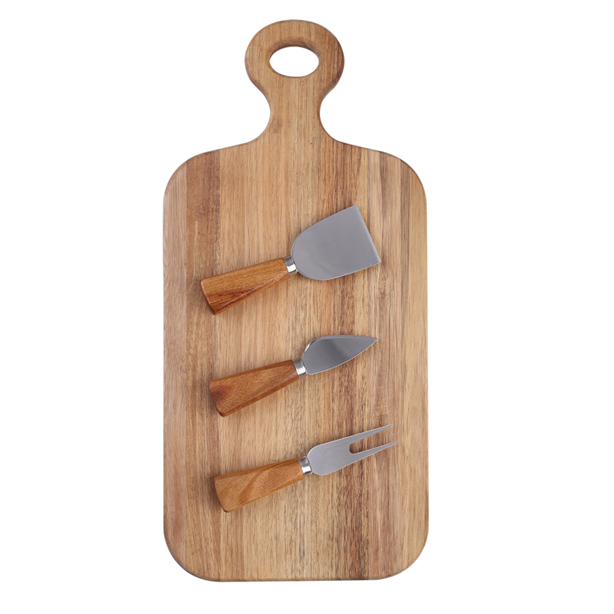 Alfresco Lane 4 Piece Oblong Acacia Wood Cheese Paddle w/ Knives Plate 43x20cm
