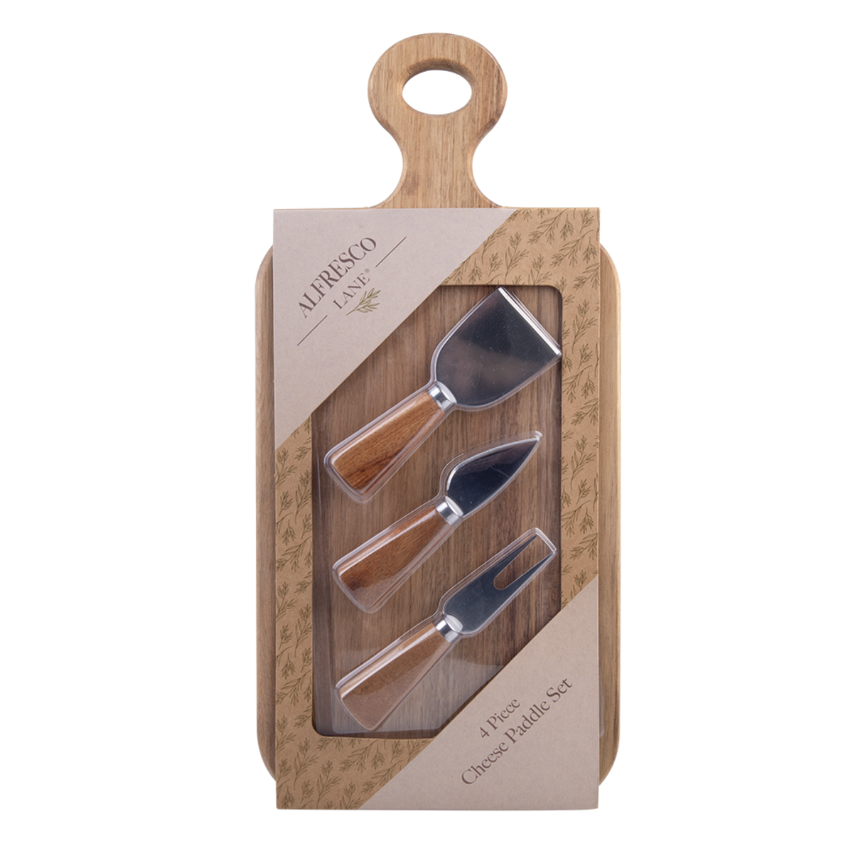 Package Includes: Alfresco Lane 4 Piece Cheese Paddle Set Rectangle