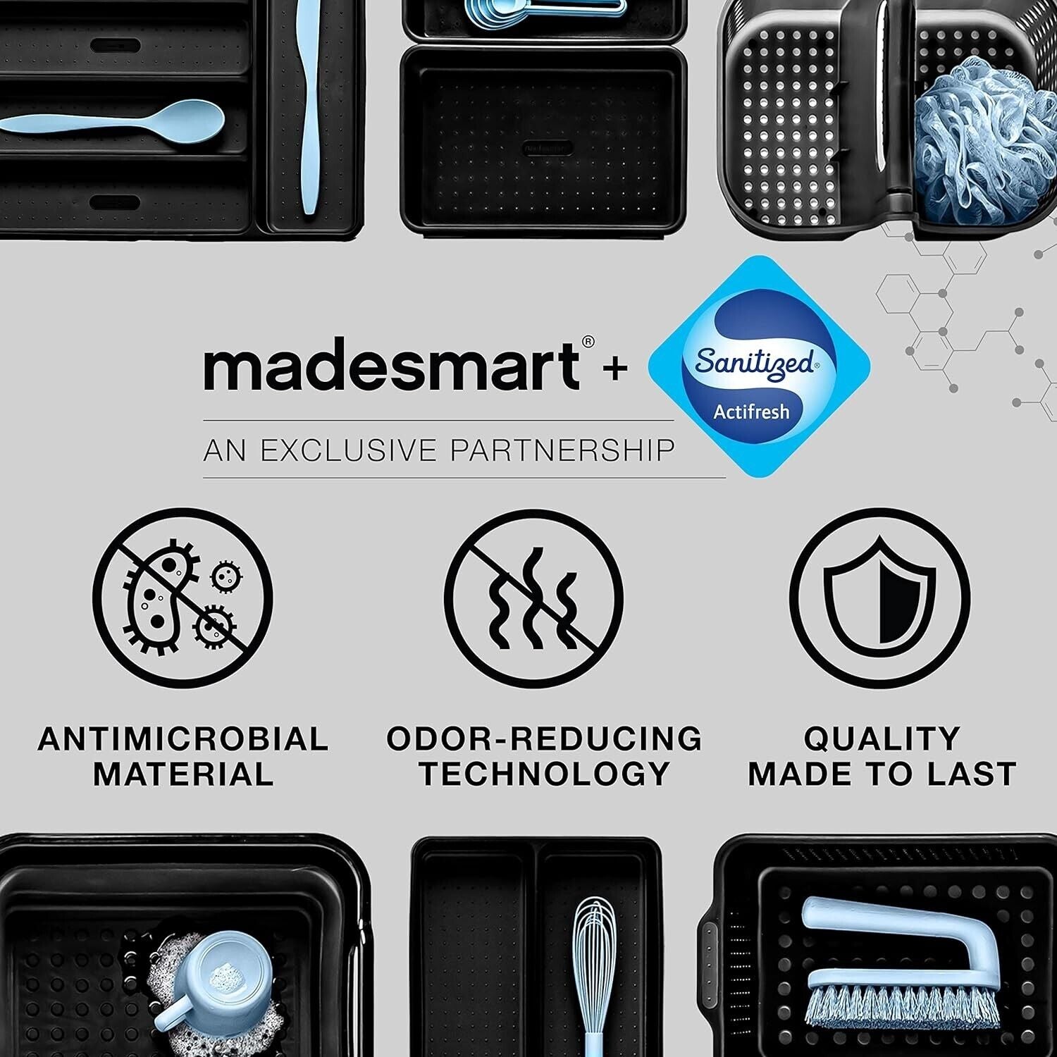 Features rounded corners for easy cleaning, soft-grip lining and non-slip rubber feet to keep things in place. Made from high-quality, antimicrobial plastic.