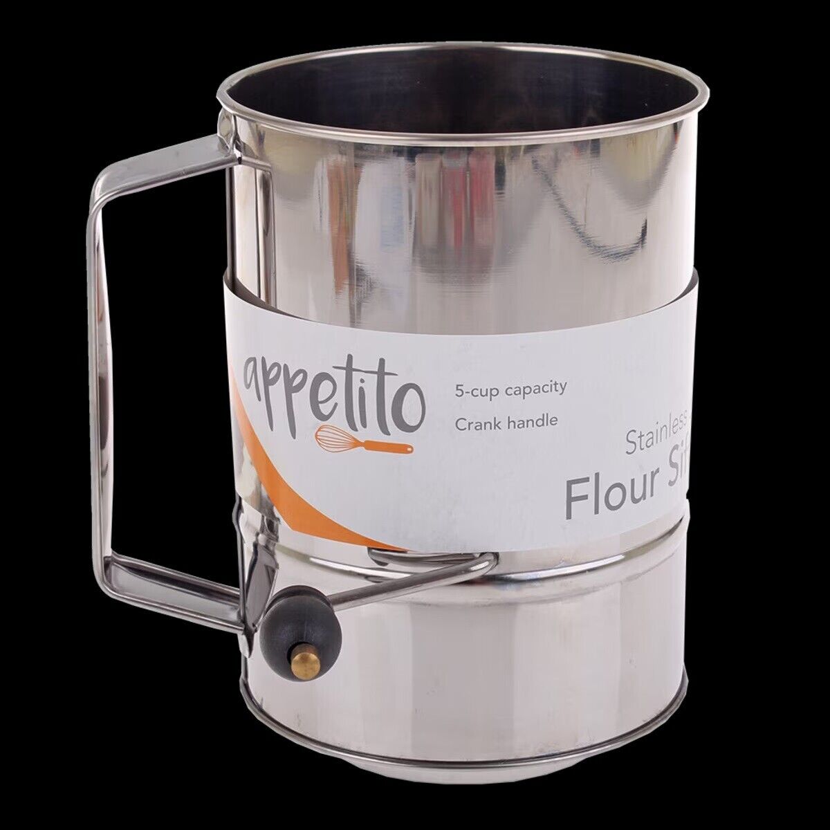 Appetito Stainless Steel 5 Cup Flour Sifter Crank Handle Stainless Steel Rot