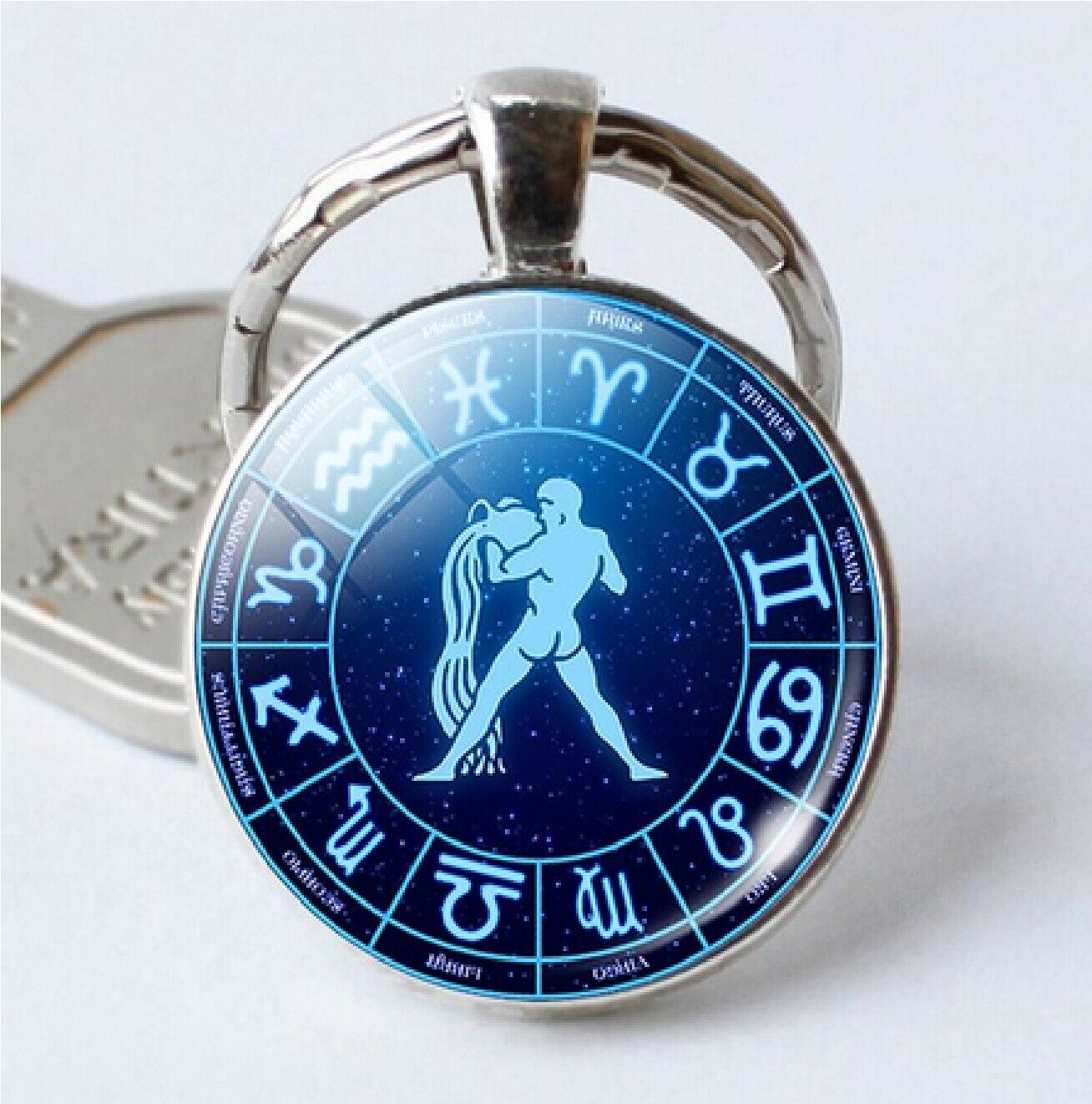 Aquarius Keyring Constellation Keychain Glass Pendant Silver Plated