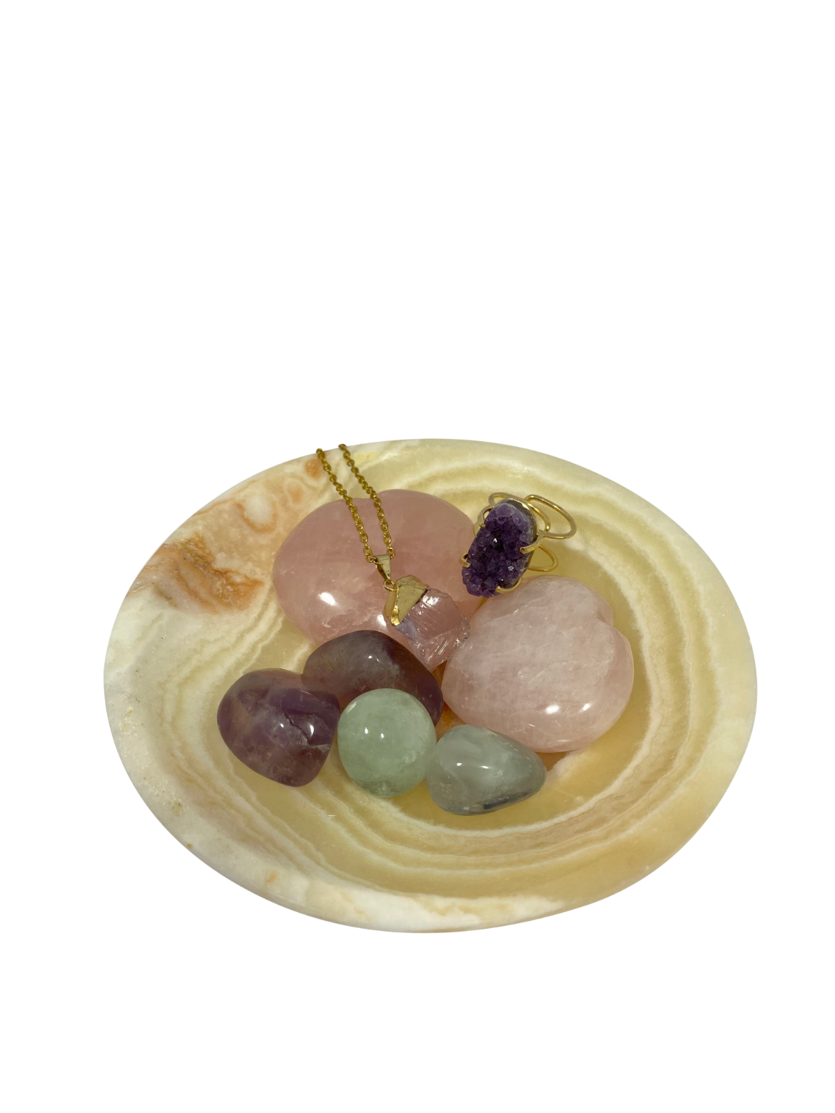 Aragonite Round Plate Crystals and Jewelry Holder Display Bowl