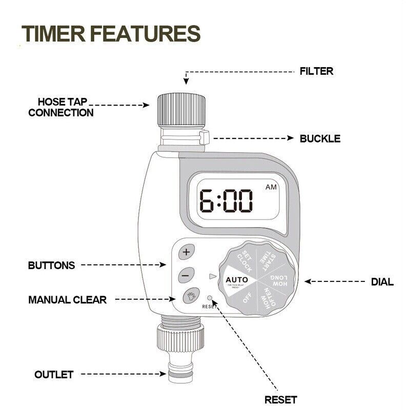 This timer features simple, easy installation and programming. There is no need for tools. Just set the start time, watering duration and frequency.