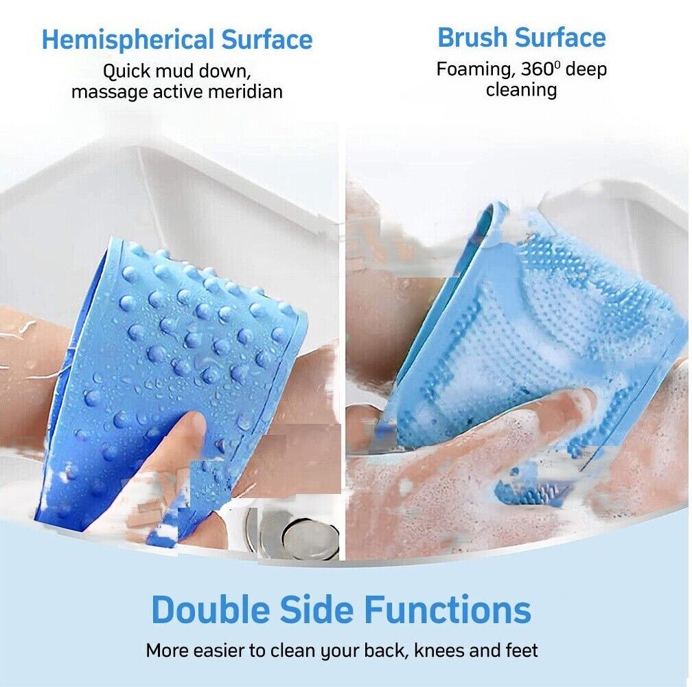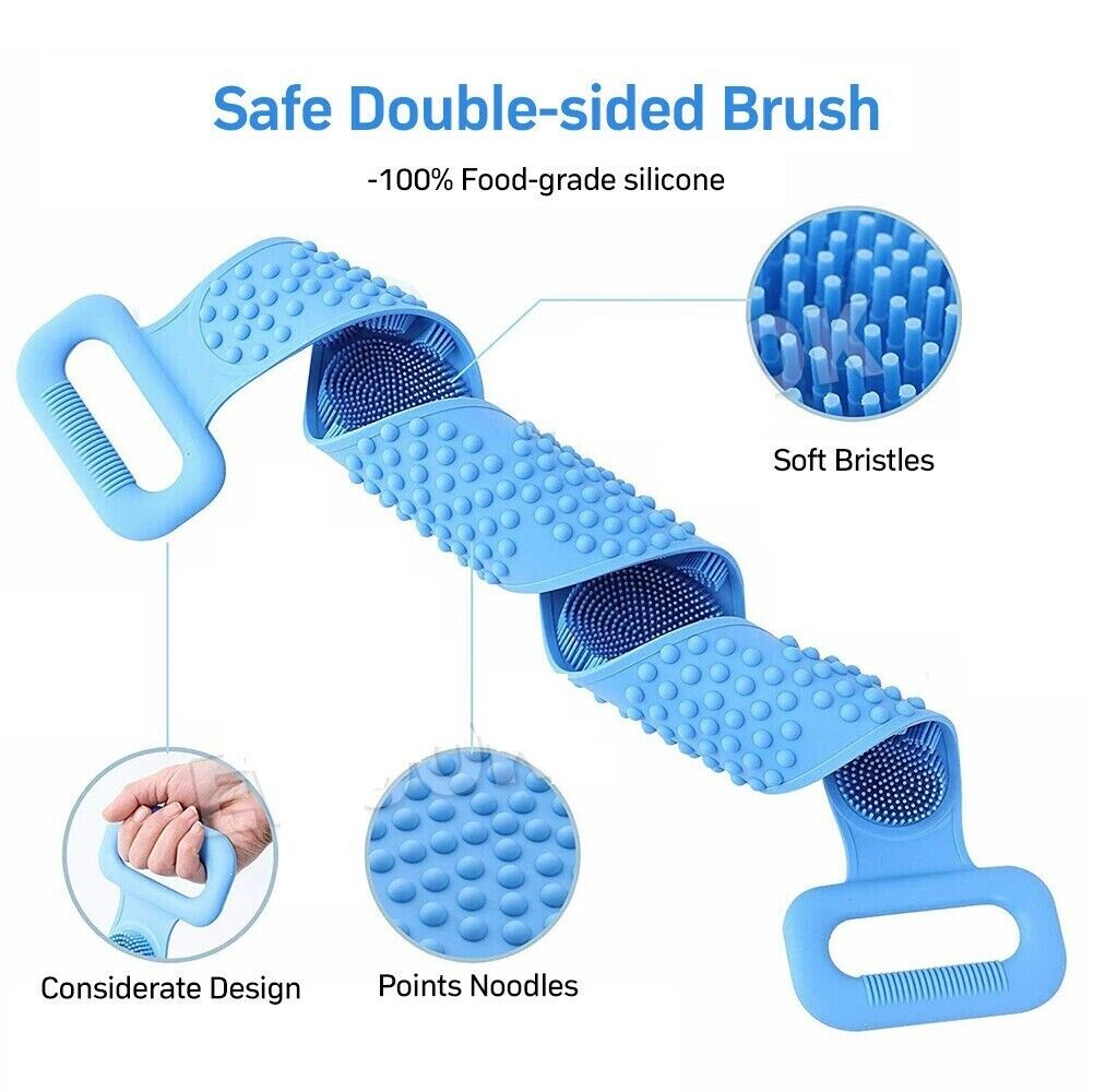 Bath Silicone Exfoliating Back Strap Scrub Shower Body Scrubber Brush Wash Blue