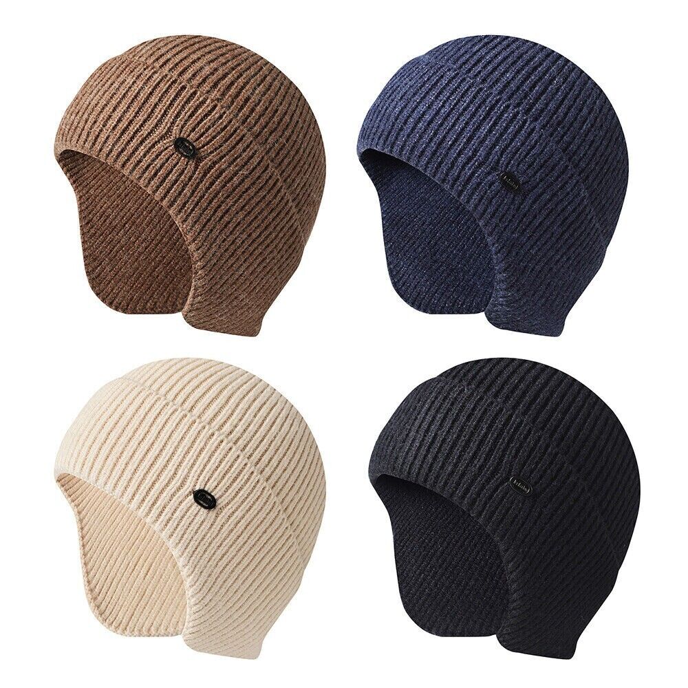 Winter Warm Mens Knitted for Beanie Hat With Earflaps Outdoor