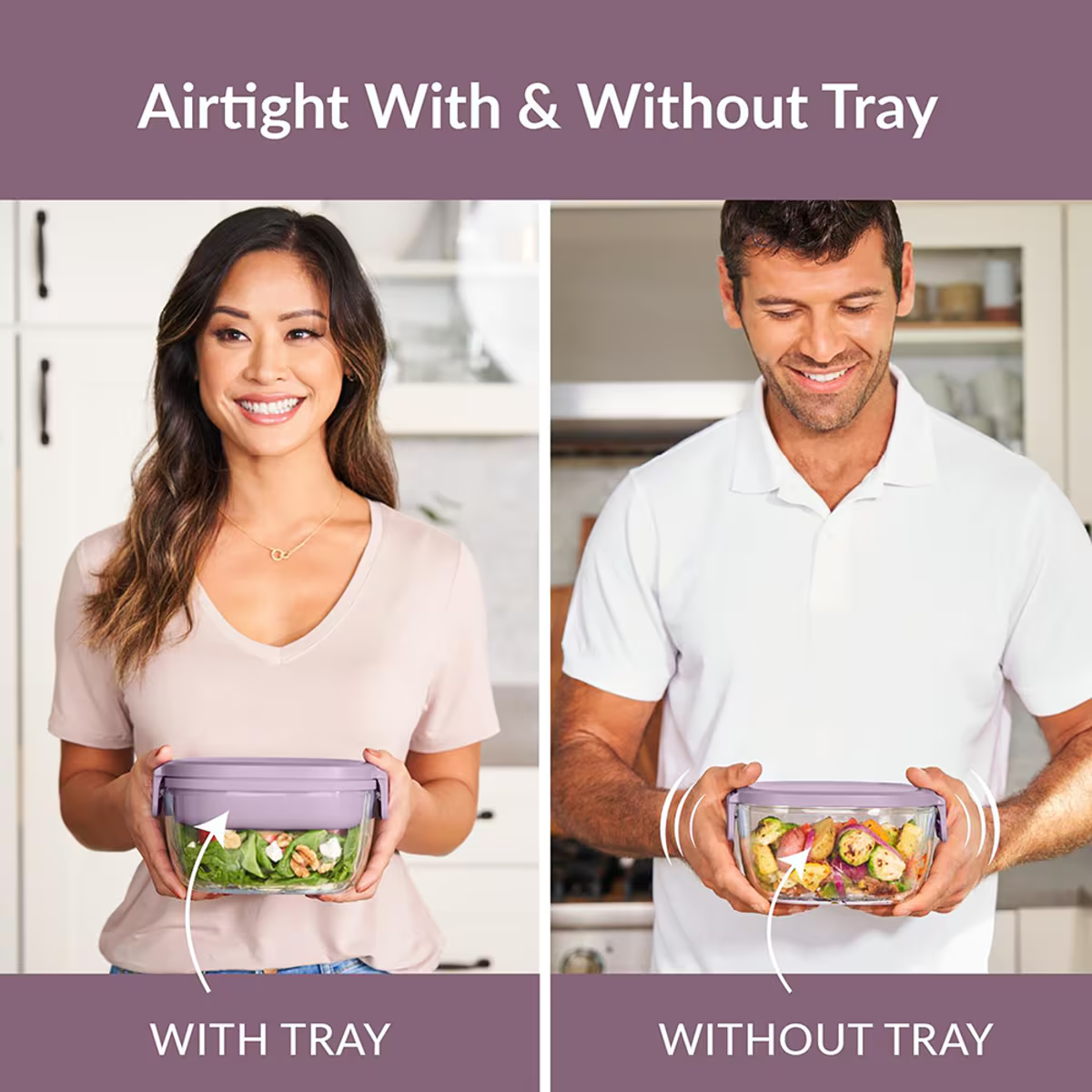 The unique silicone seal around the lid and locking clips prevent leaking when you use it without the tray, and you can easily hold a hearty helping of greens, pasta, or fruit – making it the perfect lunch salad container for adults.