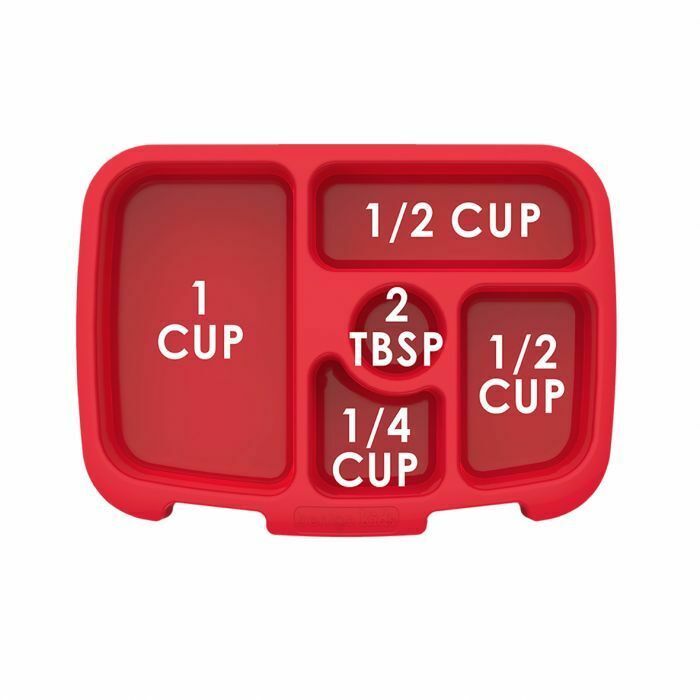 - Five compartments: left-1 cup; back-1/2 cup; right-1/2 cup; front-1/4 cup; sauce-2 tbsp.