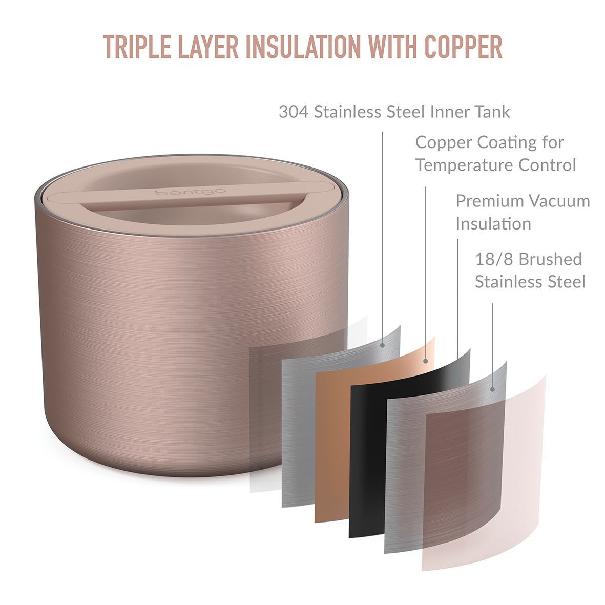 Bentgo Stainless Steel Triple Insulated Food Jar Container Flask 560ml-Rose Gold