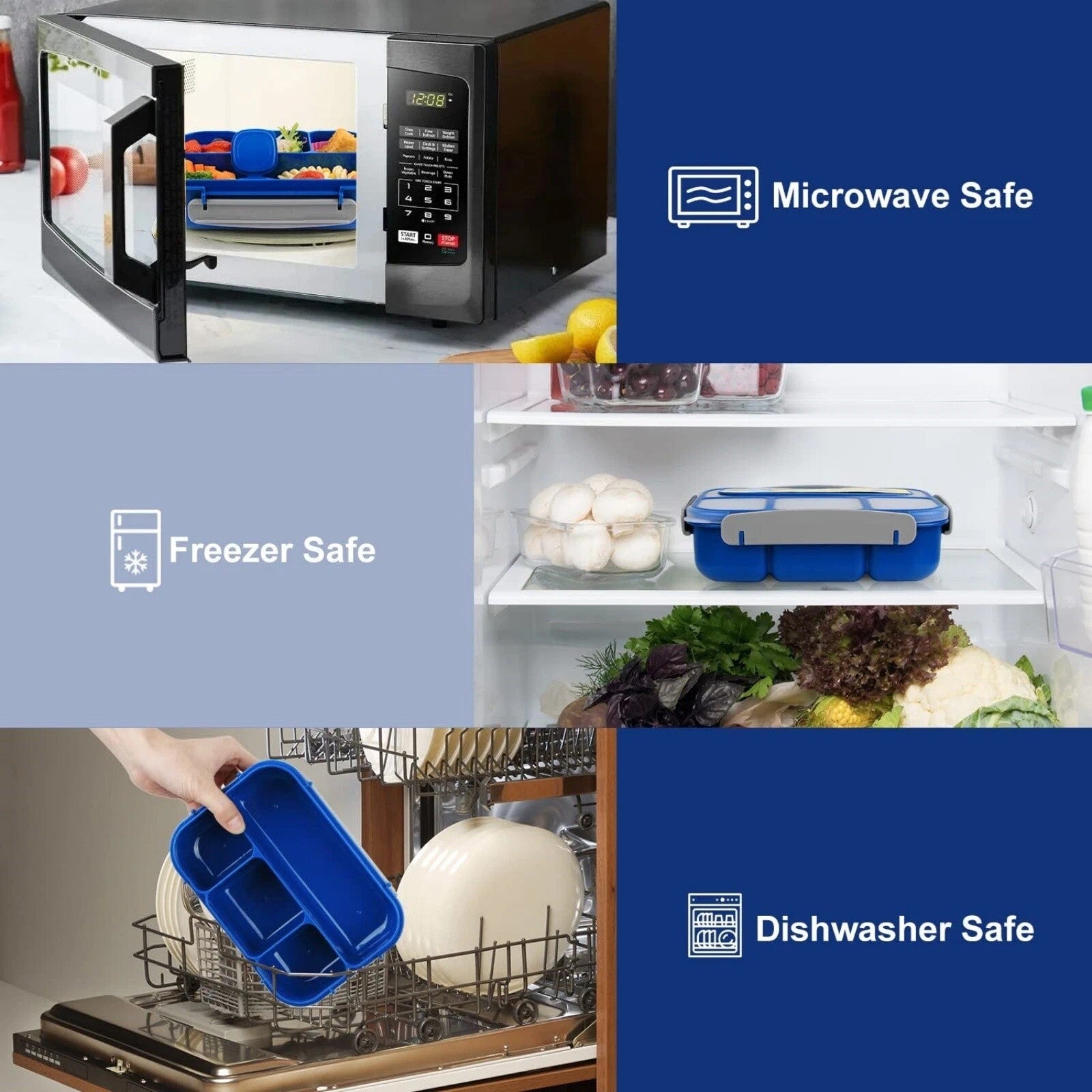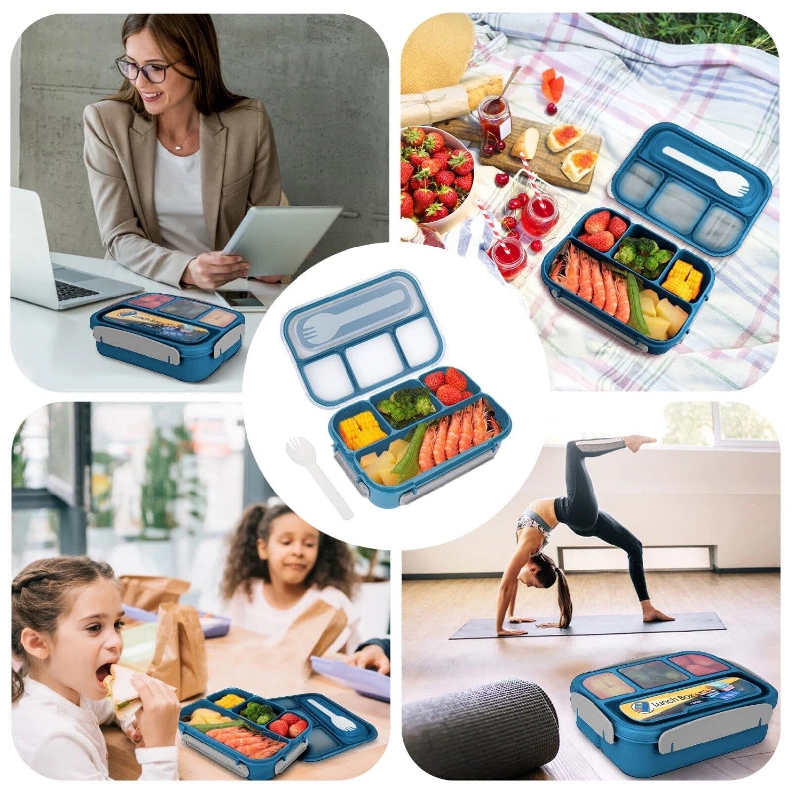 Package Includes: 1 piece Bento Box Lunch Container 4 Compartments- Blue