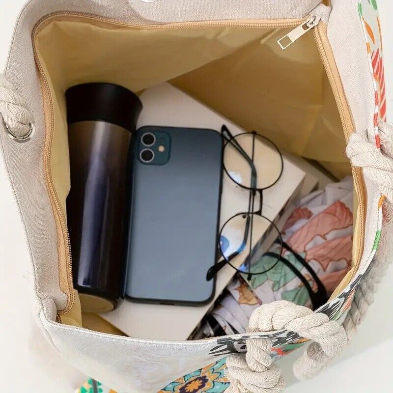 Package Includes: 1pc Blue Eye Printed Casual Versatile Linen Fabric Tote Bag