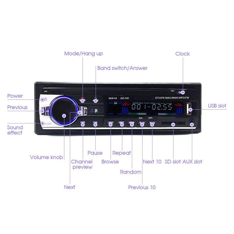 Bluetooth Car In-dash Radio Stereo Head Unit Player 1 DIN