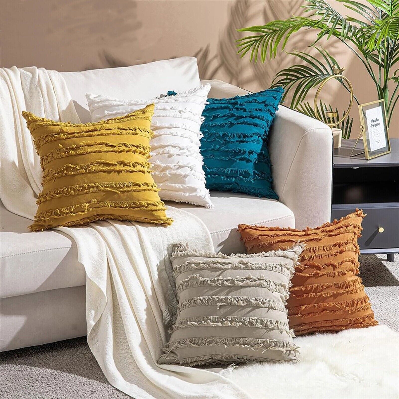 Stripe Jacquard polyester Linen fabric farmhouse boho pillow covers, Comforter and Durability. Plain color velvet cushion cover, perfect for the bedroom or lounge.