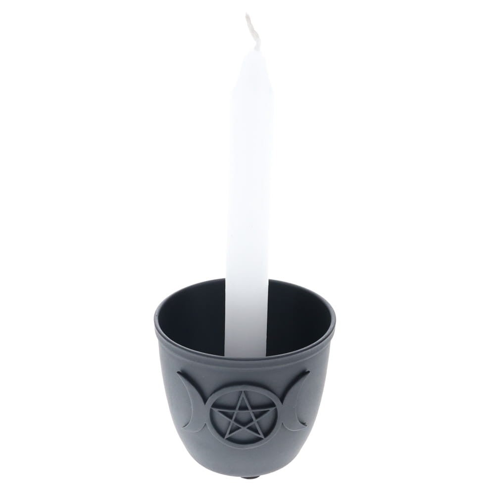 - Add a magical touch to your home or ritual space with this striking Triple Moon Pentacle Candle Holder.