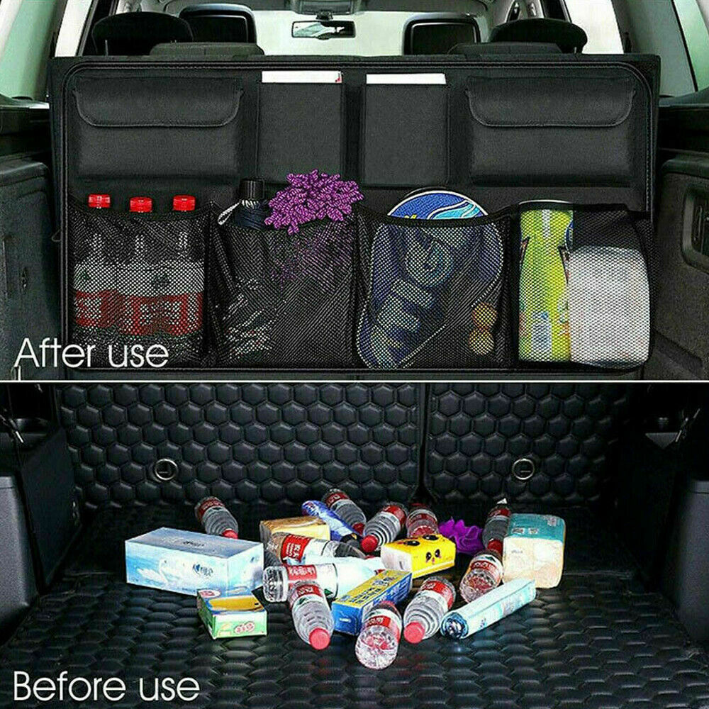 Do you want to make your car trunk in order? This item is a trunk organizer with multiple pockets. The straps with buckle closure and the hook and loop fastener bring double security for storing heavy articles. The top-class oxford cloth material makes it wear resistant and heavy duty, durable and practical. It will help to keep your articles organized and easy to access. Perfect to use in outdoor activities.