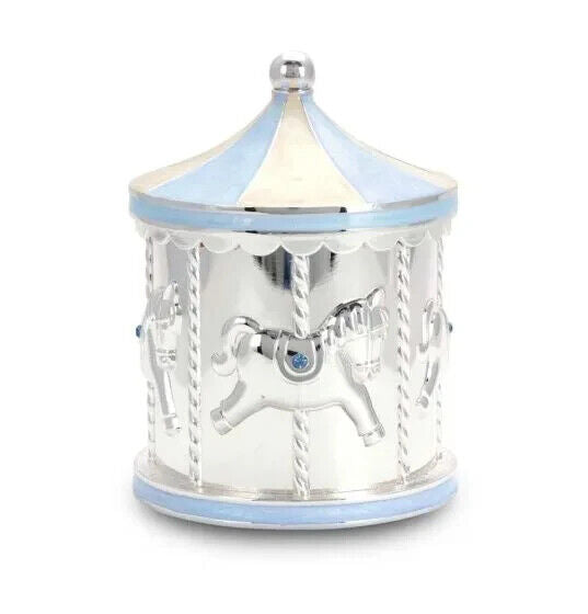 Carousel Round Money Bank Box Baby Boy Gift Christening Decor Room Nursery Blue