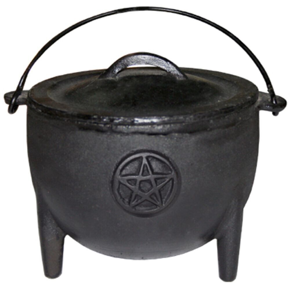 A beautiful piece for the home or altar, this Black Cast Iron Cauldron features a Pentacle symbol, is great for all types of smudging or ritual work.