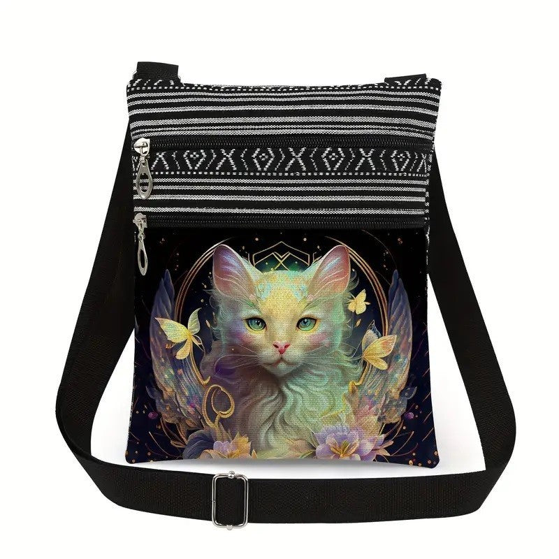Cat Butterlies White Animal Print Casual Cross Body Shoulder Bag 2 Pockets