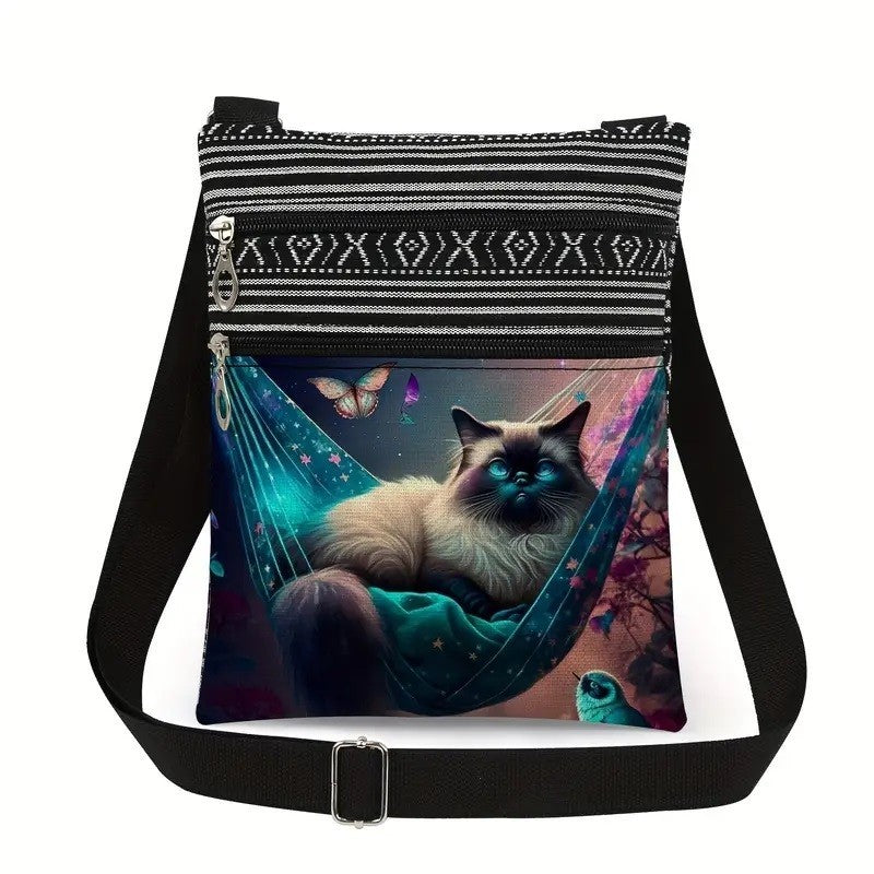 Cat Hammock Animal Print Casual Cross Body Shoulder Bag 2 Pockets