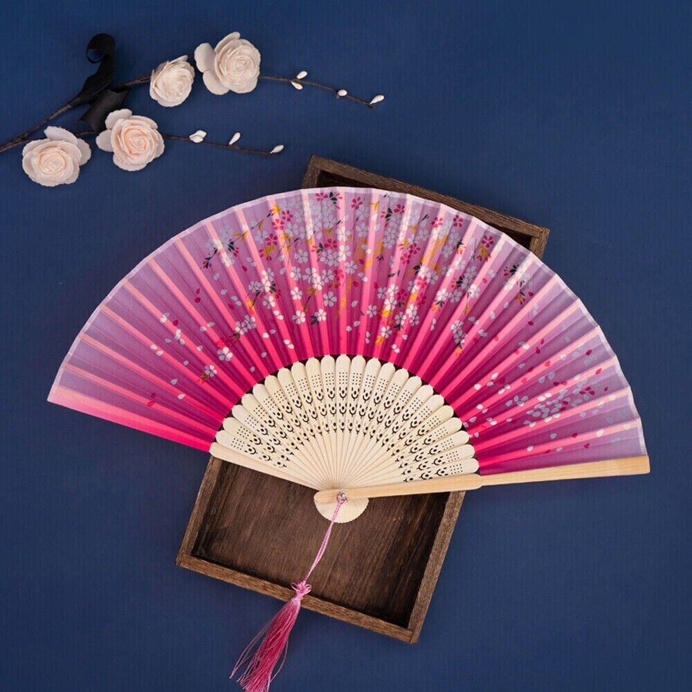 Chinese Style Folding Fan Bamboo Cloth Foldable Hand Held Dance Party Favor - B