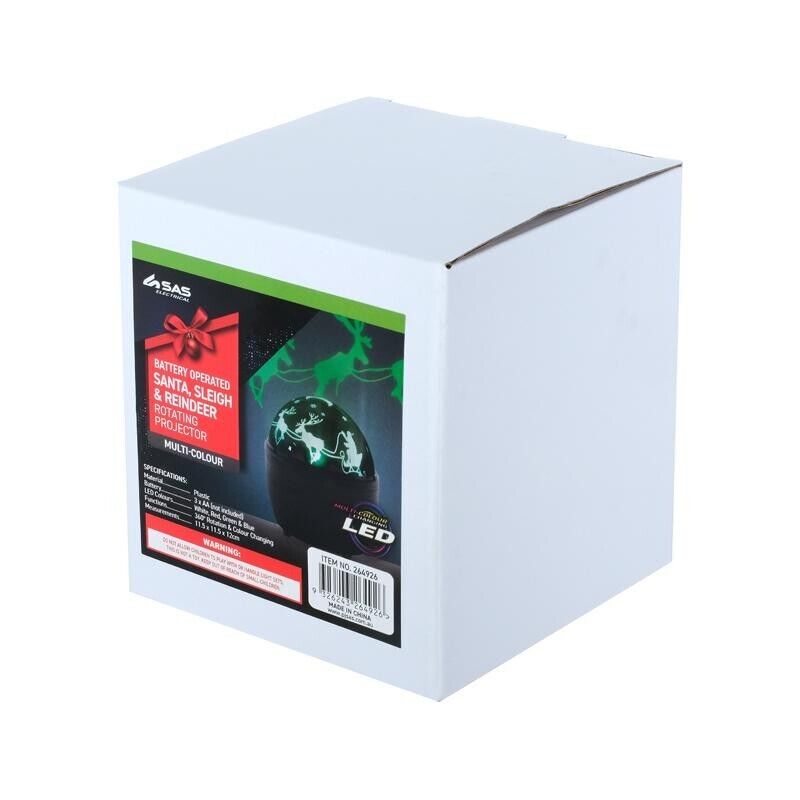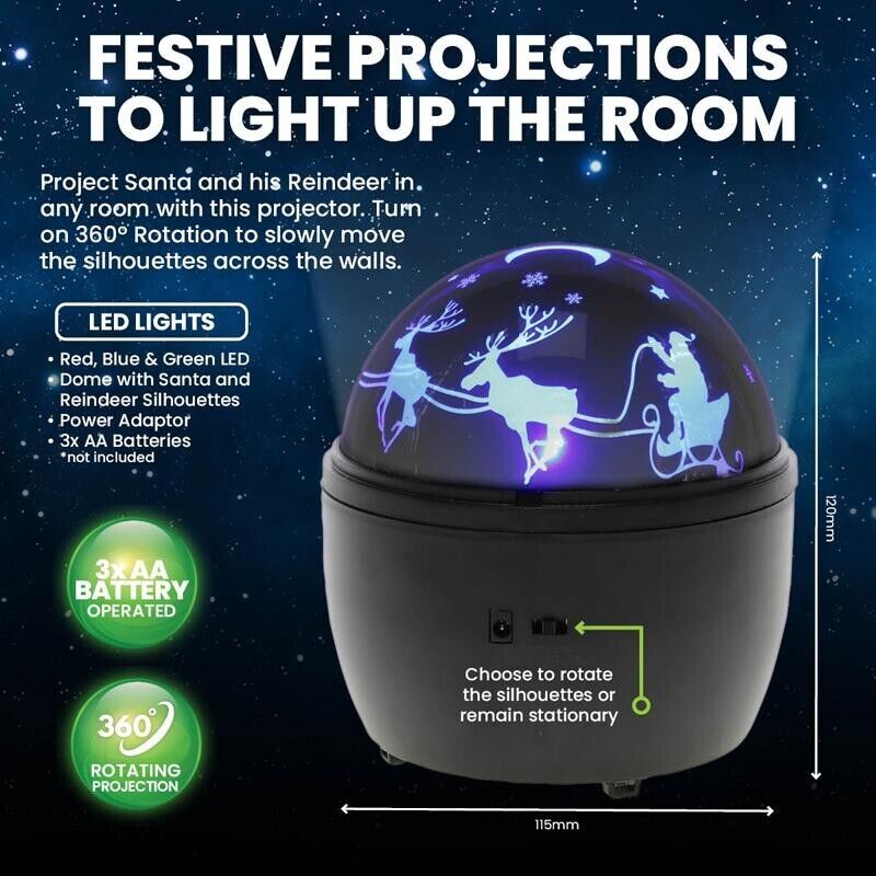 - Santa, Sleigh & Reindeer Themed Rotating Projector