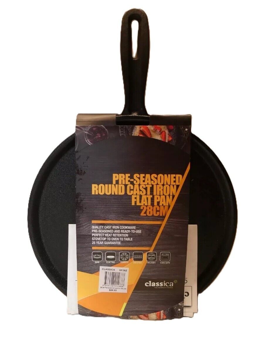 Package Includes: 1pc Classica Pre-Seasoned Square Cast Iron Grill Pan - 28cm