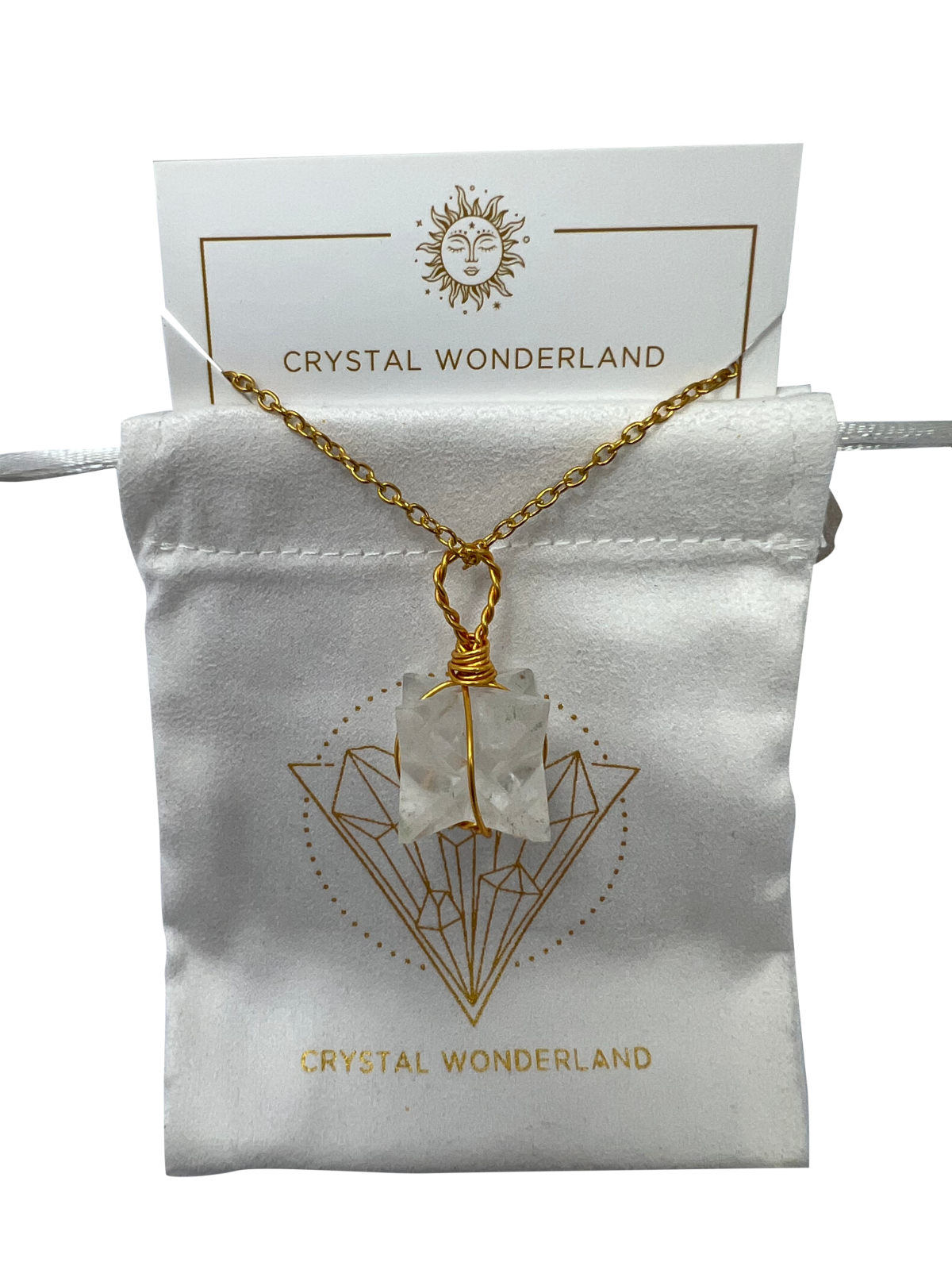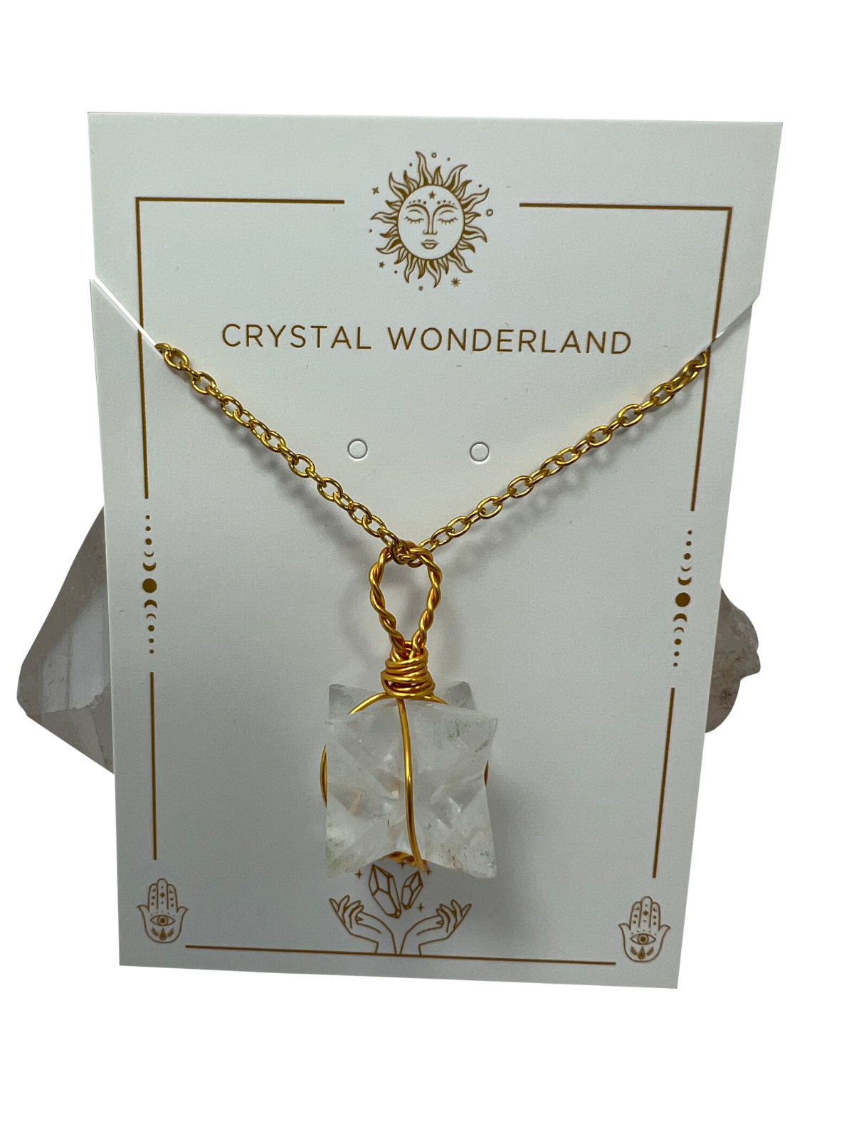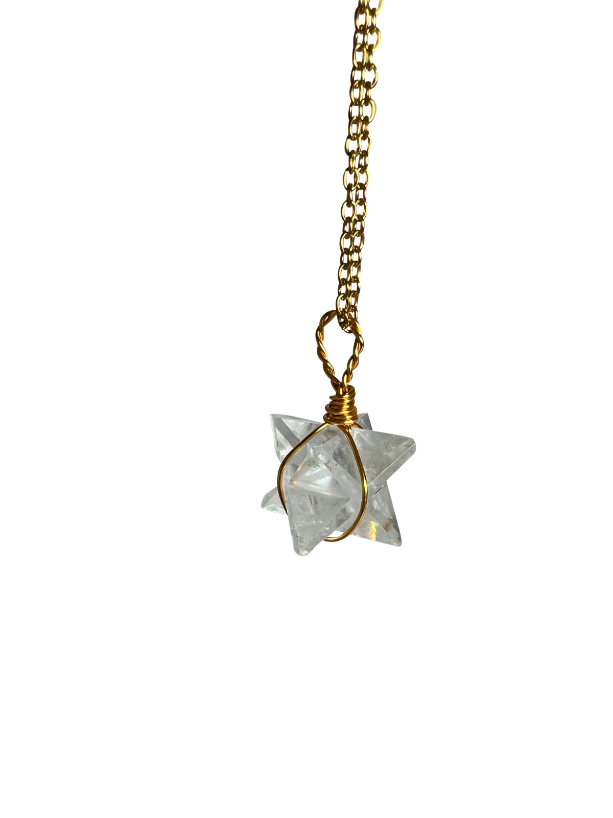 Clear Quartz Merkaba Crystal Pendant Necklace Gold Healing Crystal