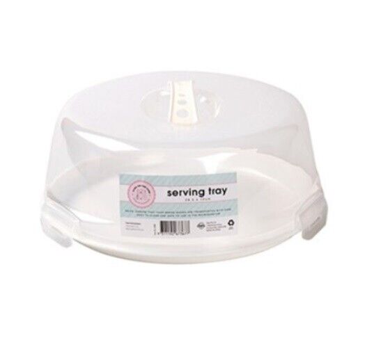 Clip Fresh Round Cake Saver Box Clear Container Serving Tray - White 28x12cm