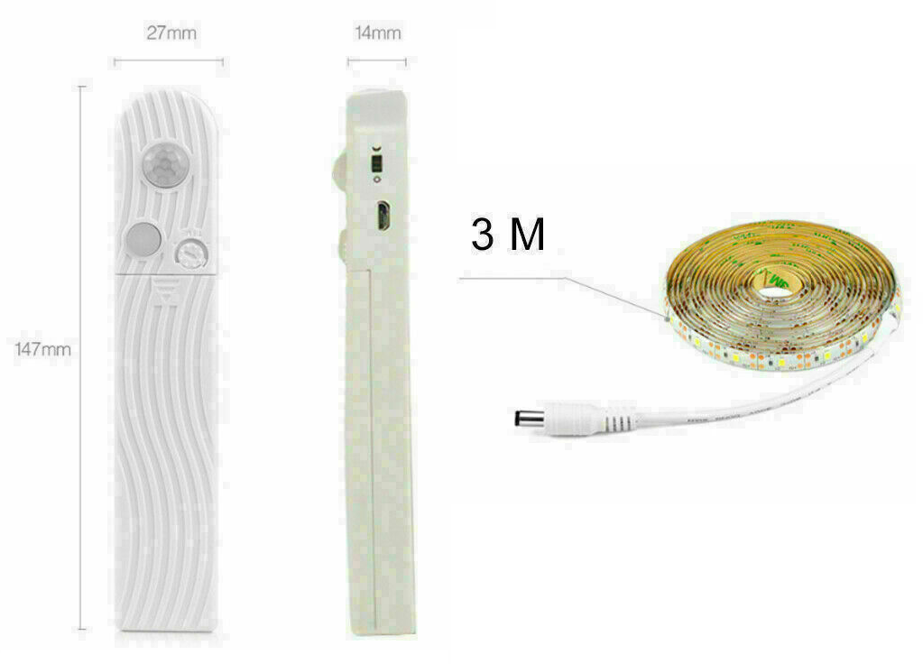 Cool White Battery Operated Motion Sensor Cabinet Light LED Strip Under Bed 3M