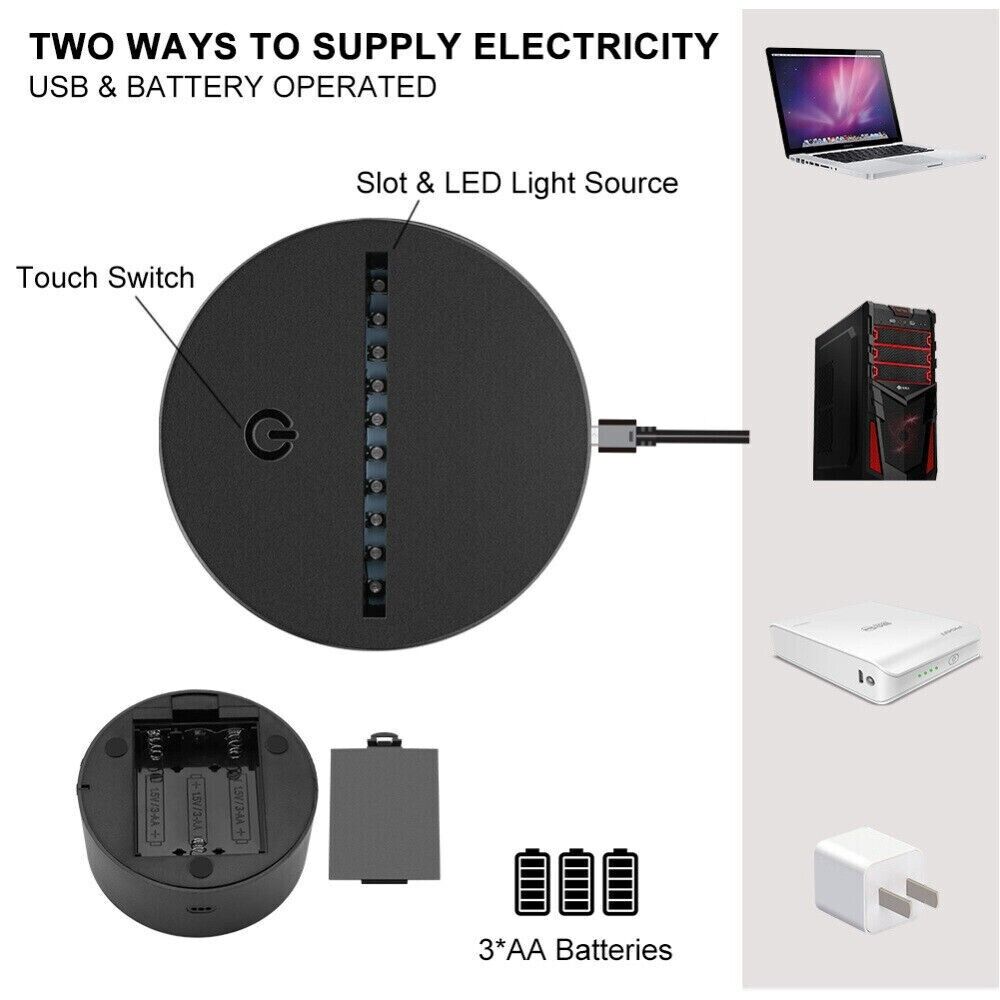 - PERSONALIZED GIFT: The 3d soccer night lamp can be powered by 3*AAA Batteries or USB connection. The battery option is great for traveling or no electricity. Your kids or friends will love this cool gift, and it is also a perfect decoration for your kids bedroom or bathroom office etc.
