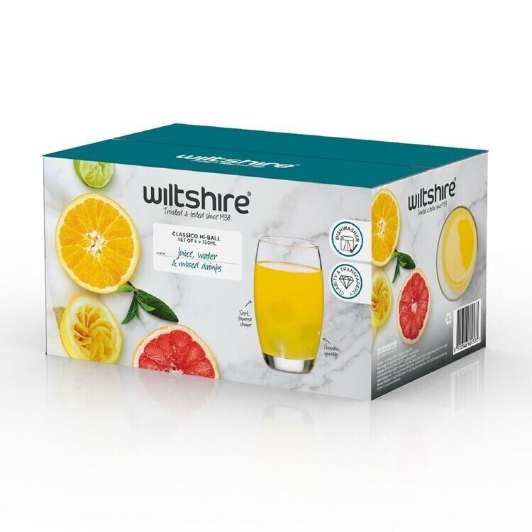 6PC Wiltshire Highball Glass Set 350ml Classico For Water Juice and Mixed Drinks