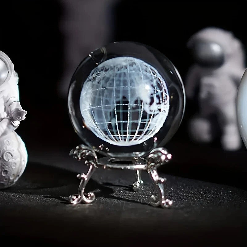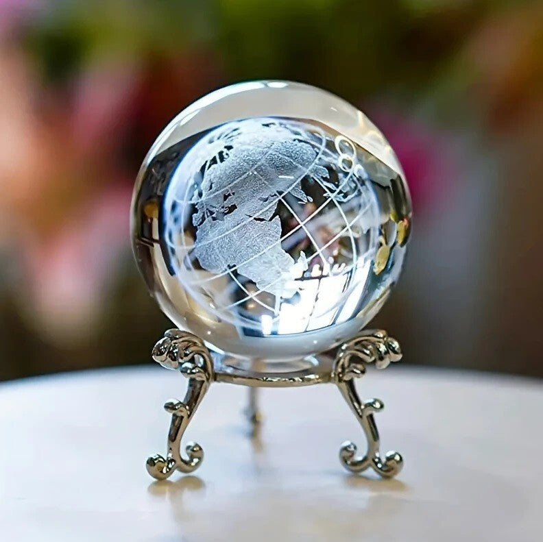 Bring the beauty of our planet into your space with this stunning Crystal Earth Sphere, meticulously carved from high-quality glass.