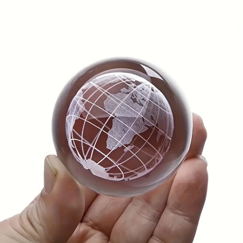 Crystal Earth Sphere Hand-Carved Glass Ball Globe Office Decor Ornament Gift