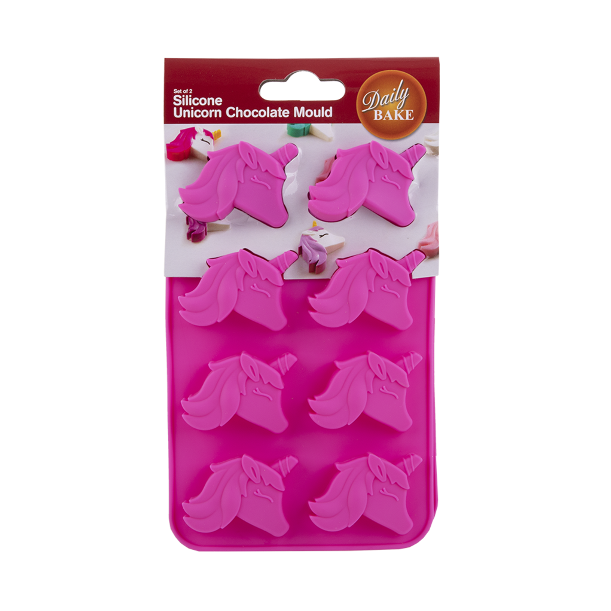 Package Includes: Daily Bake Silicone 8 Cup Unicorn Chocolate Mould Set 2 - Pink