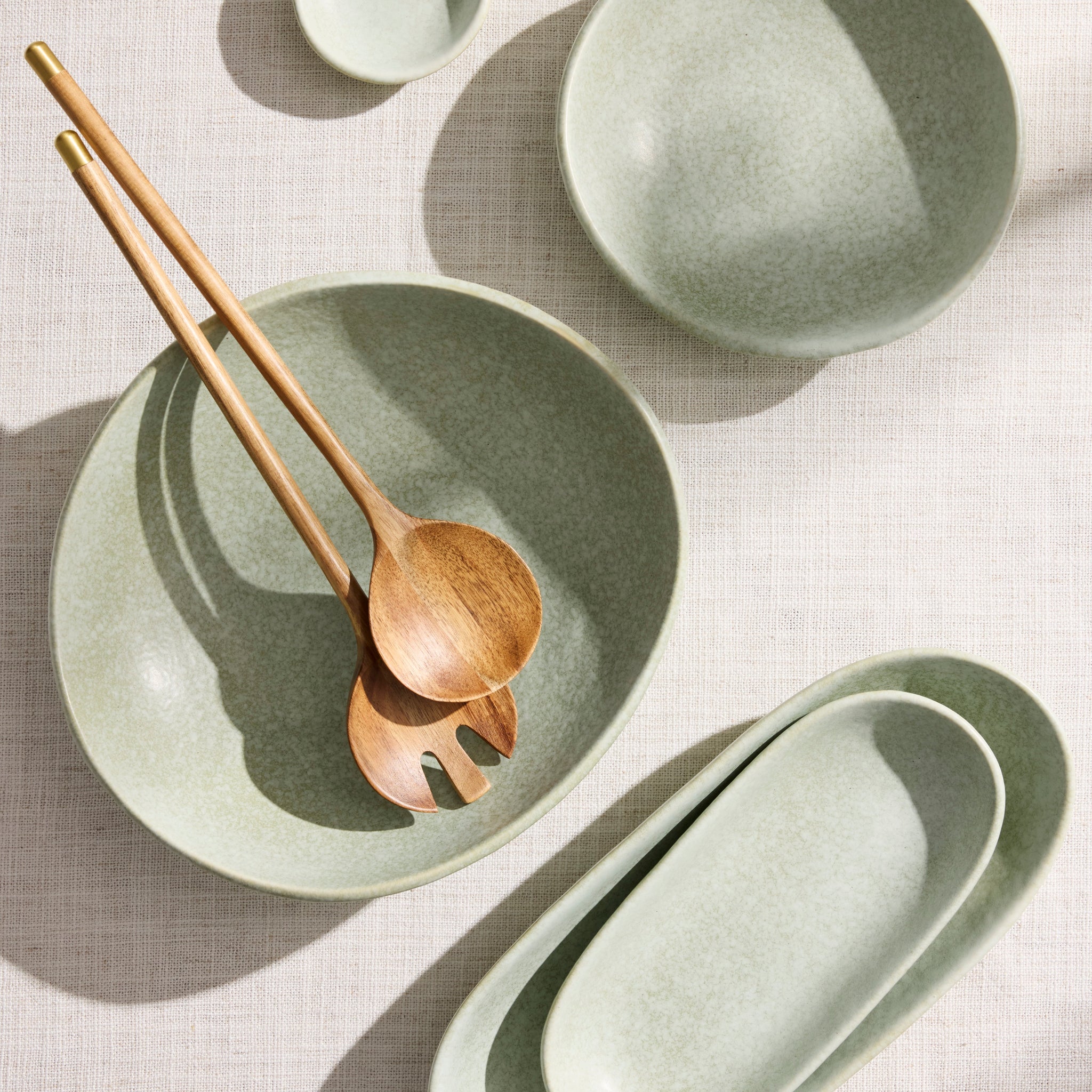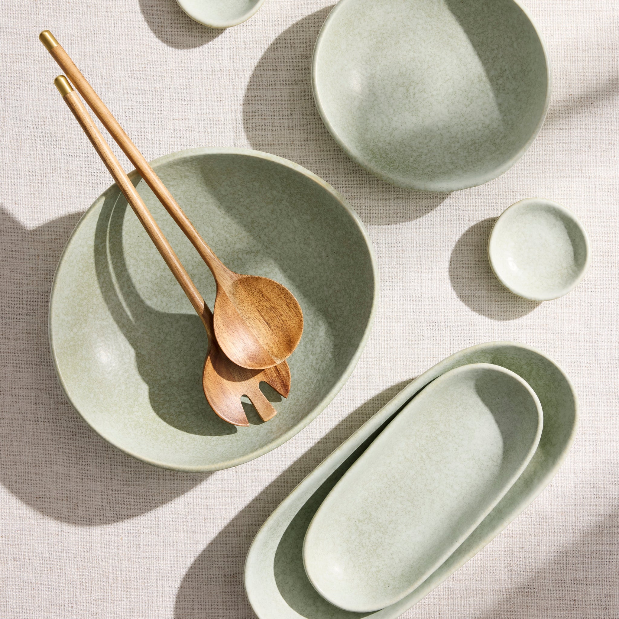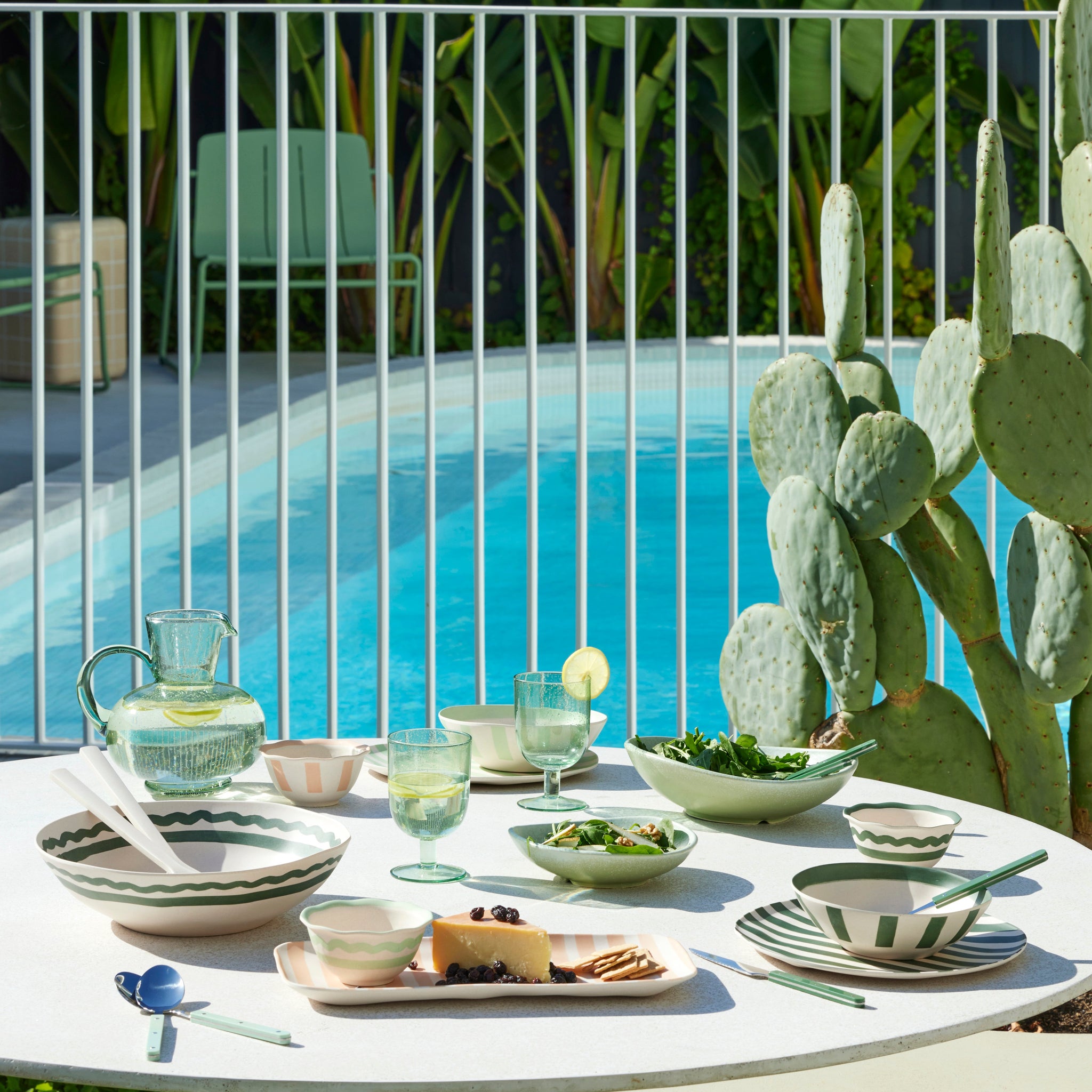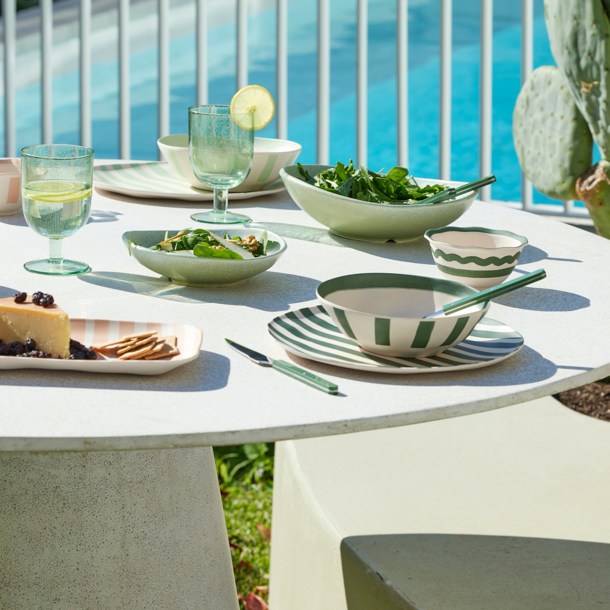 Add a touch of calming mint green to your summer tablescape with the Greta Small Porcelain Raised Serving Plate.